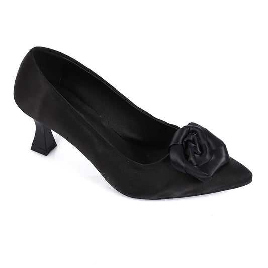 Black Upper Flower Accent Evening Pumps