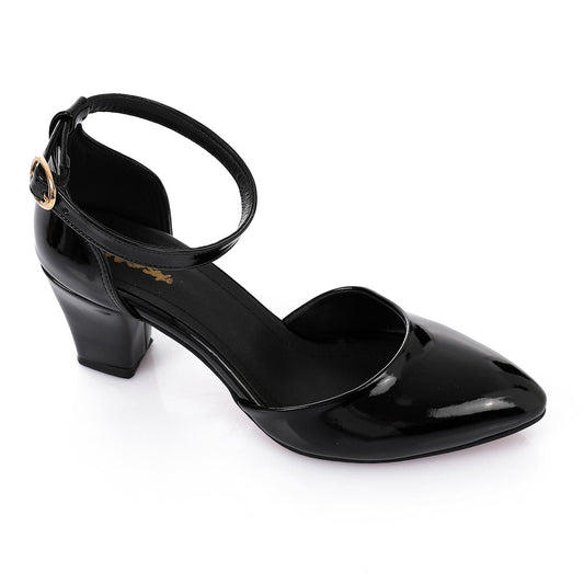 Glossy Black T-Strap Heeled Shoes