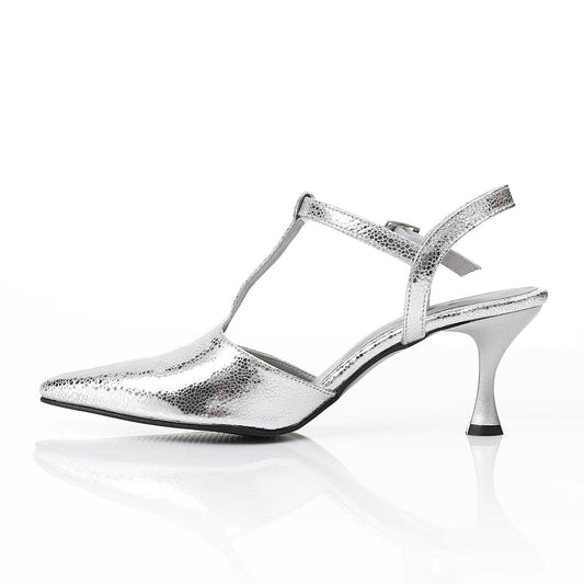 Shiny Silver Leather Pointed Toe Heels
