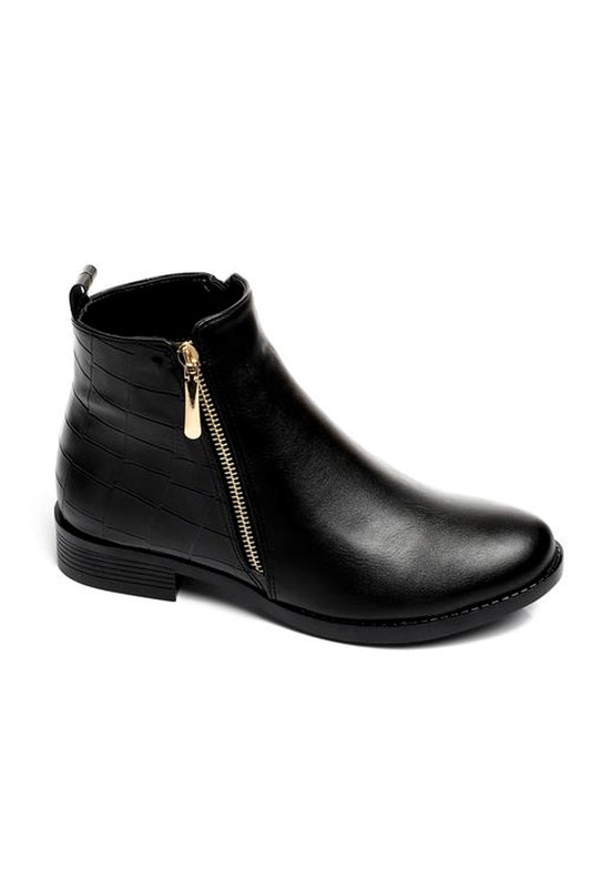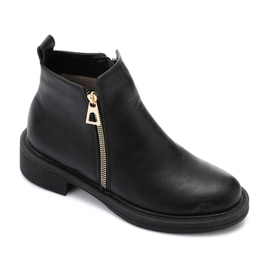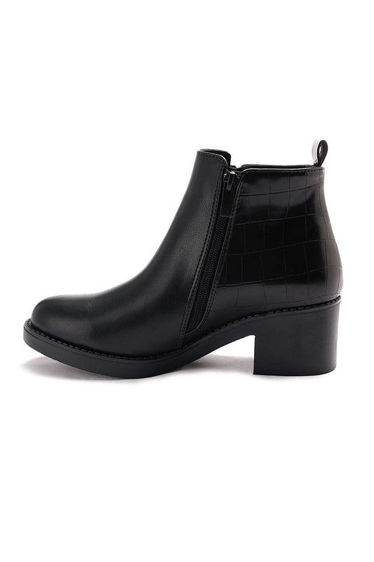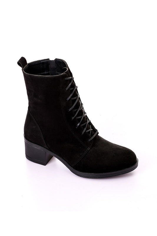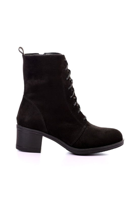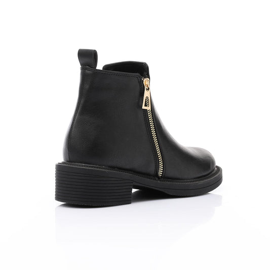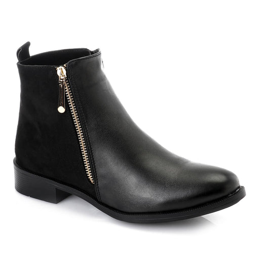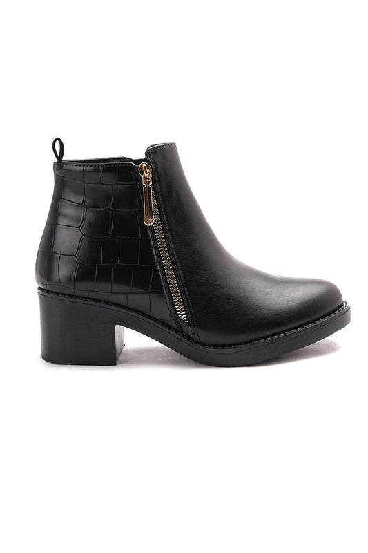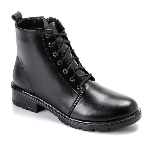 Black Stylish Zip-up Ankle Boot with Lace-up