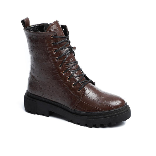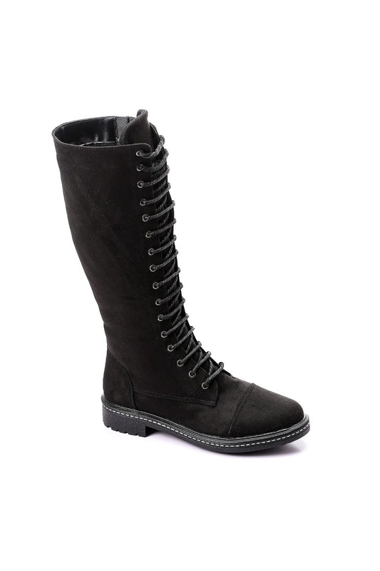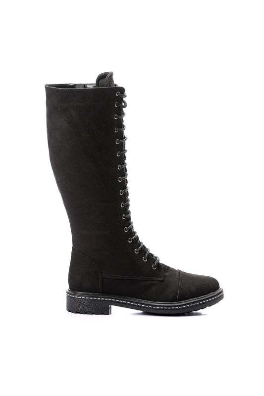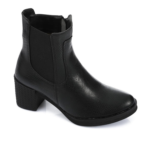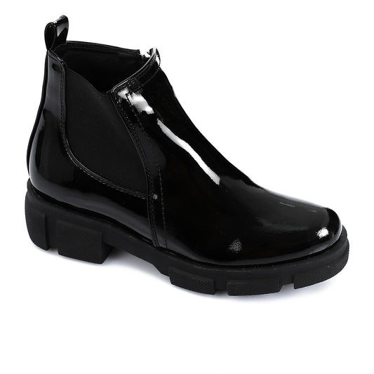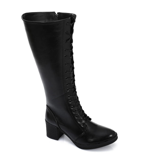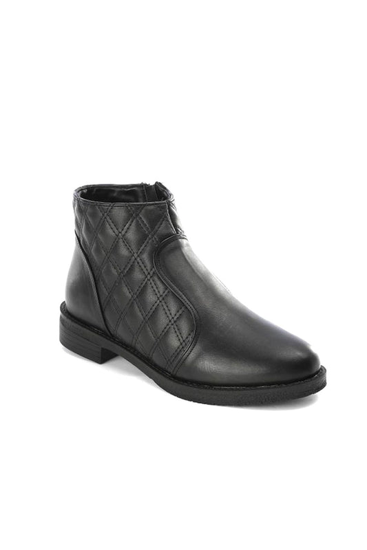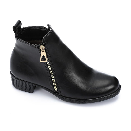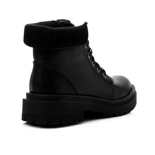 Black Stylish Zip-up Ankle Boot with Lace-up