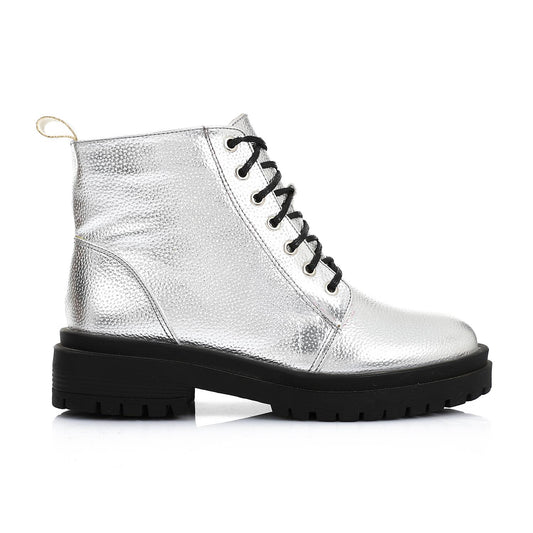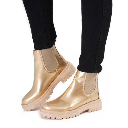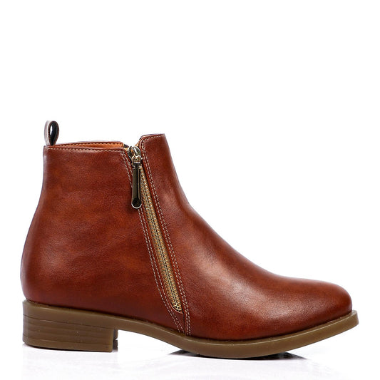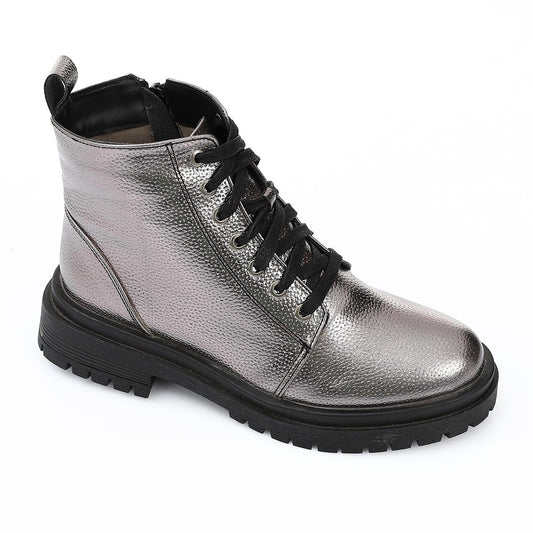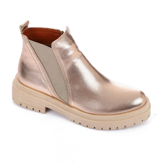 Gold Stylish Zip-up Ankle Boot with Lace-up