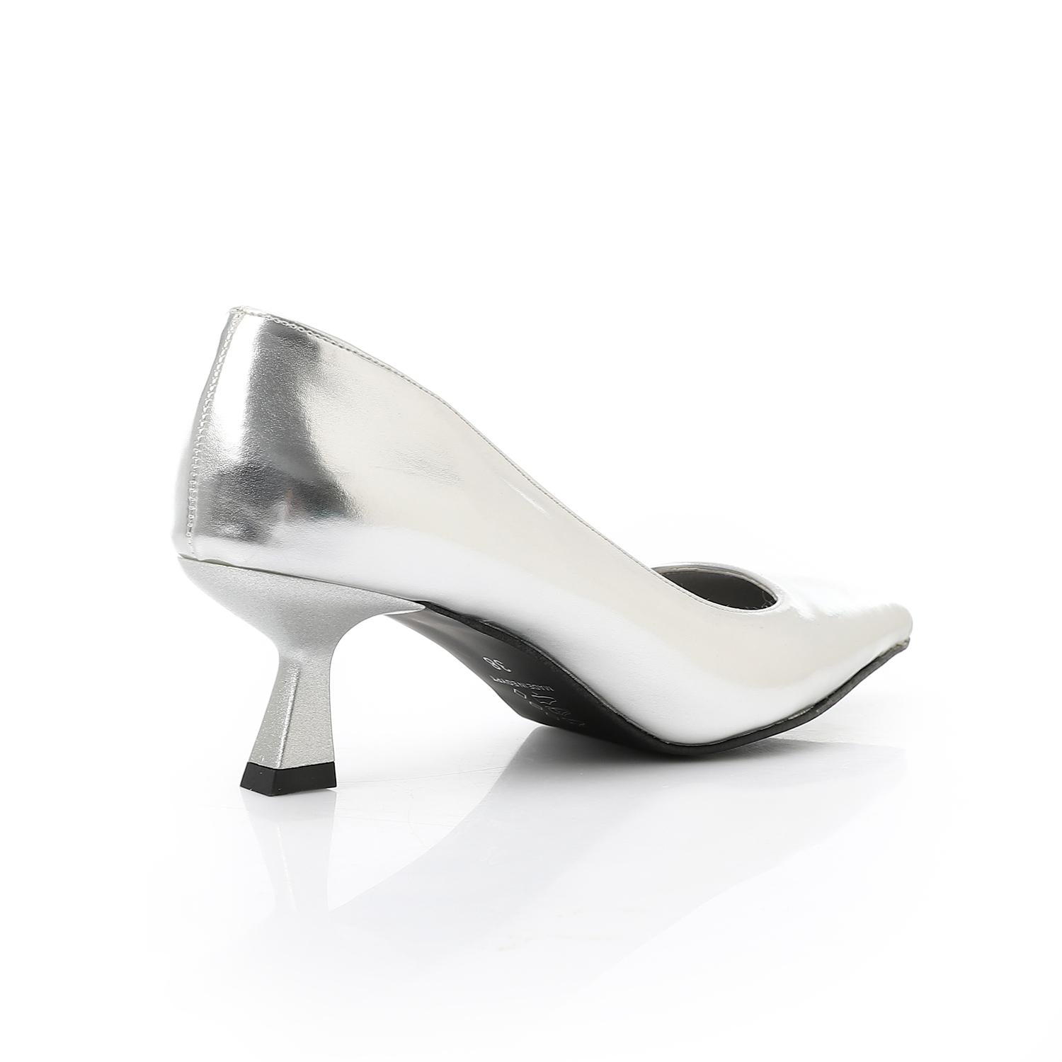 Silver Solid Pointed-Toe Pumps - حذاء بكعب سادة بمقدمة مدببة