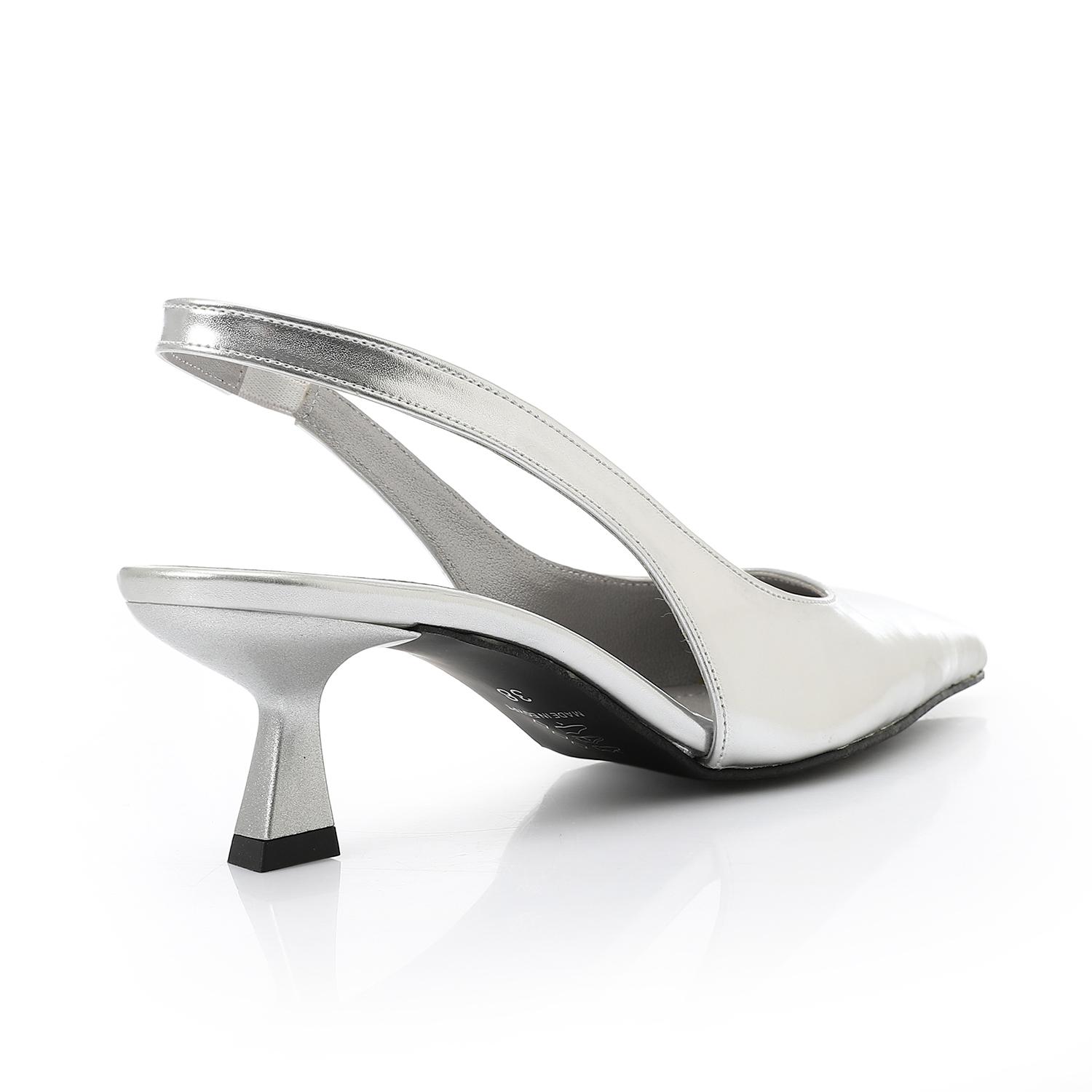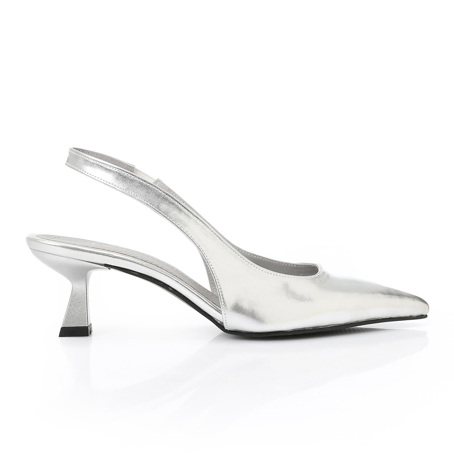 Silver Slingback Pumps - حذاء فضي بكعب مفتوح من الخلف
