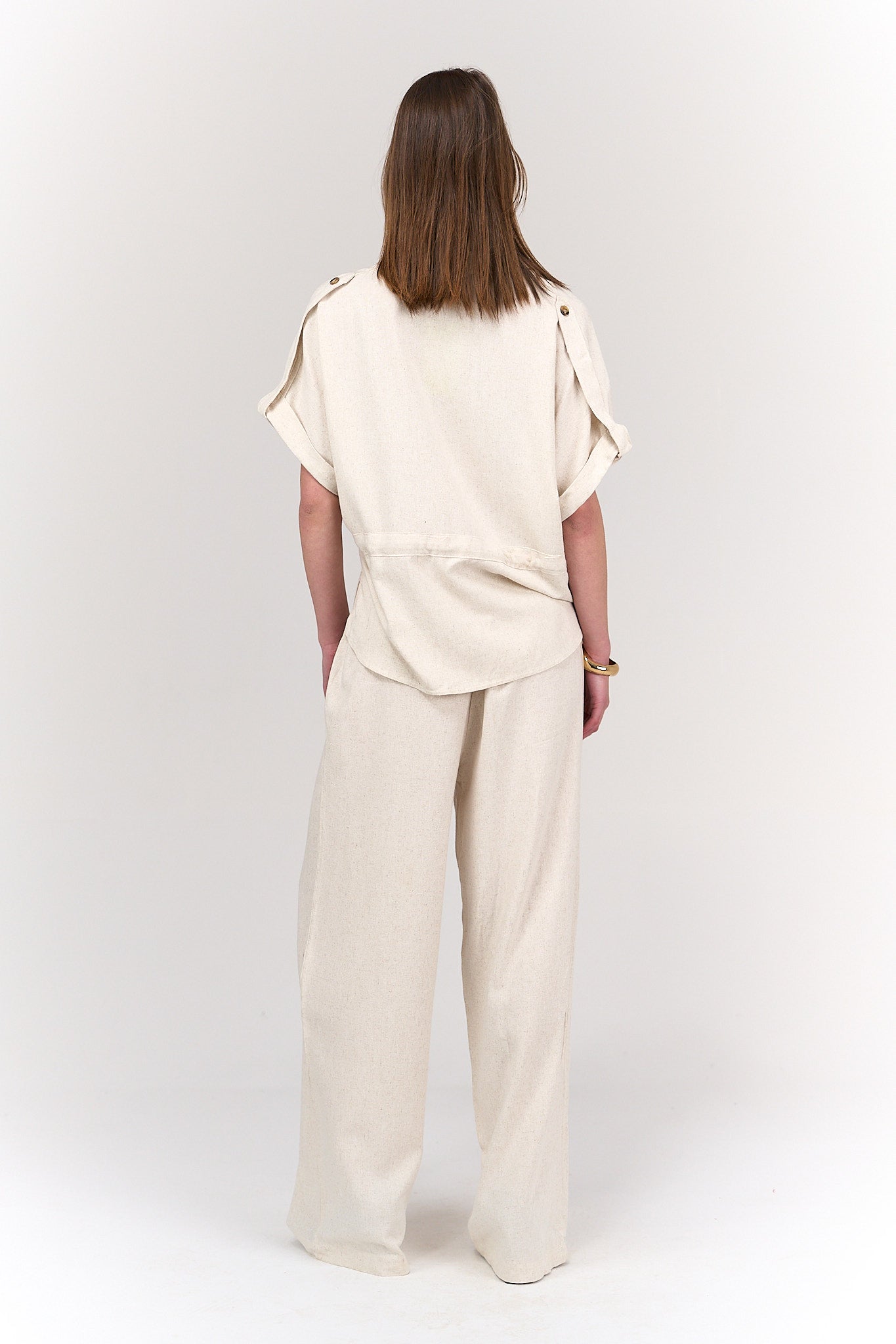 • Style it with wide-leg pants and sandals for a breezy, relaxed vibe.