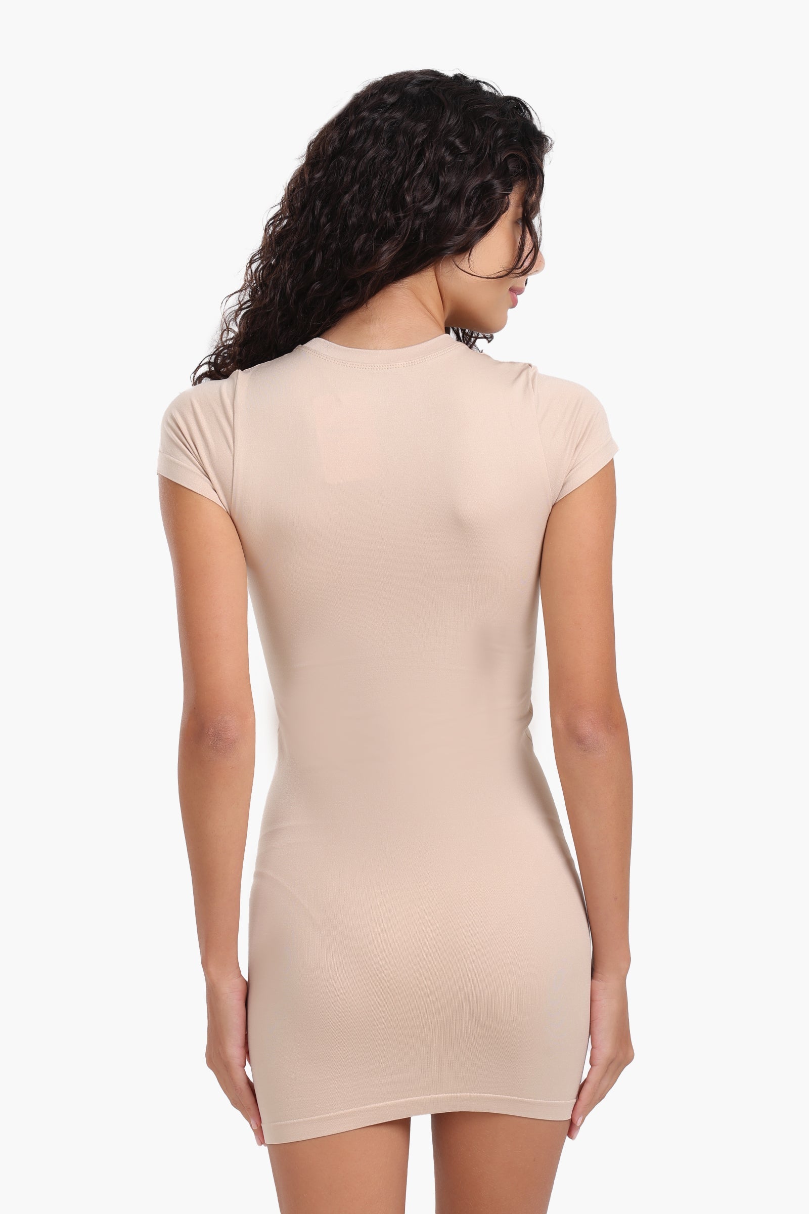 This mini slim fit dress is perfect for a sleek and effortless look. Made from a comfortable polyamide blend, it features a flattering slim fit that hugs your curves. The solid pattern and short sleeves offer a minimalist style, while the crew neck adds a classic touch. Easy to slip on, this dress is perfect for both casual and dressy occasions. Pair it with your favorite accessories to elevate the look or keep it simple for a chic, everyday outfit.