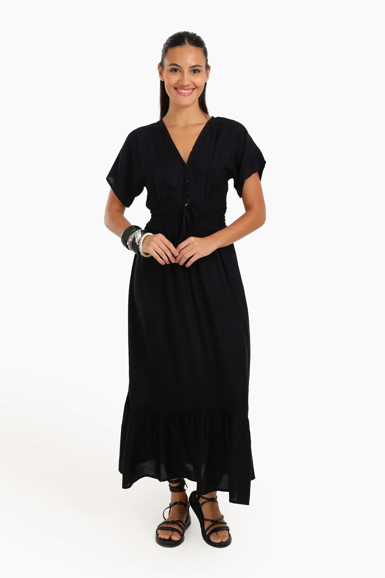 Maxi Dress with Front Drawstring