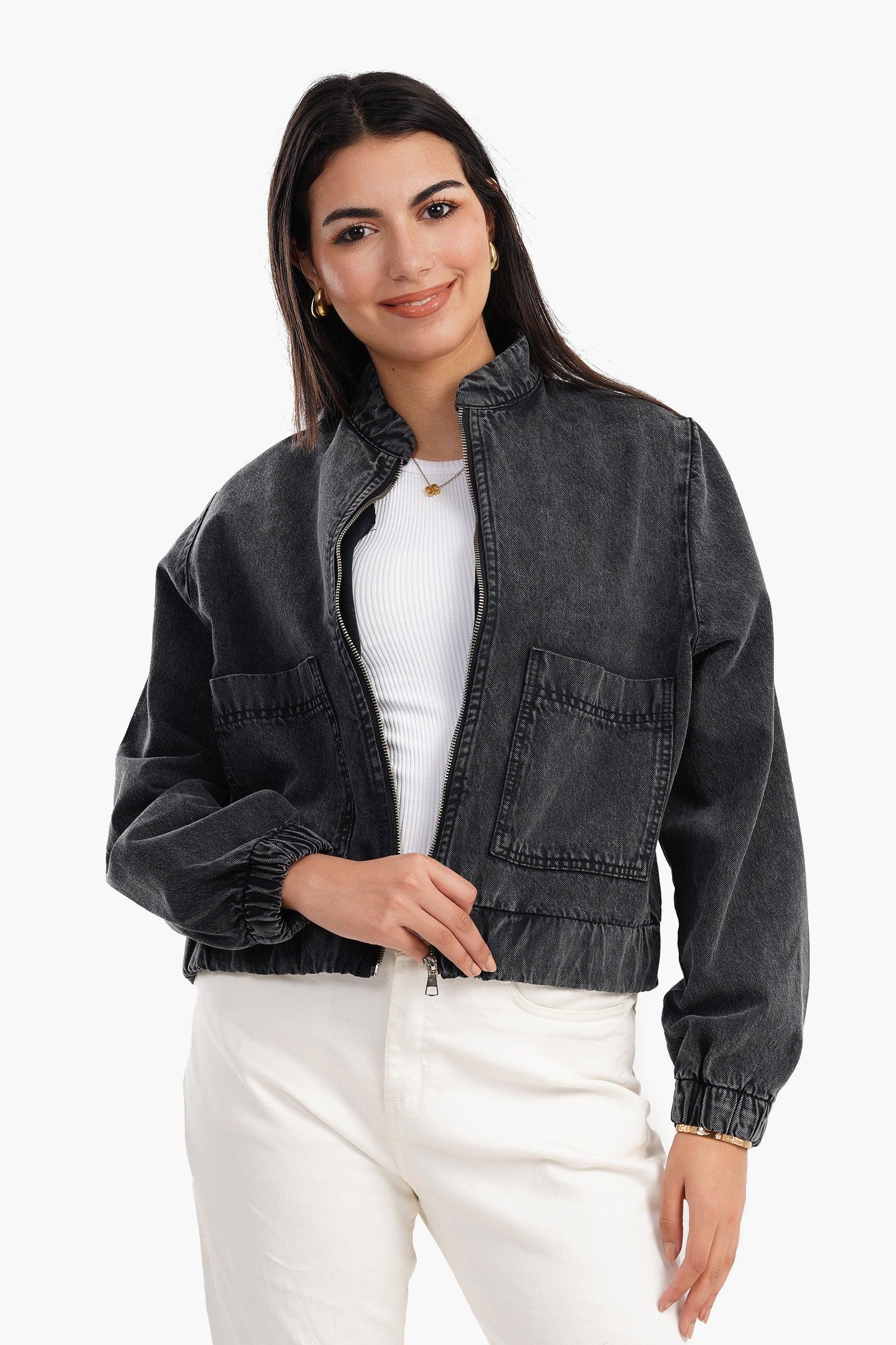 Elevate your casual look with this versatile Cotton denim jacket. The relaxed fit and solid pattern make it a timeless piece that pairs effortlessly with any outfit. The stand collar adds a touch of style, while the zipper closure ensures a secure and comfortable fit. With long sleeves, elastic cuffs, and hemline, this jacket offers both style and comfort. The 2 front pockets add a practical element, perfect for storing your essentials. Whether you wear it over a dress for a chic look or with jeans for a classic denim-on-denim style, this Cotton denim jacket is sure to become a staple in your wardrobe.