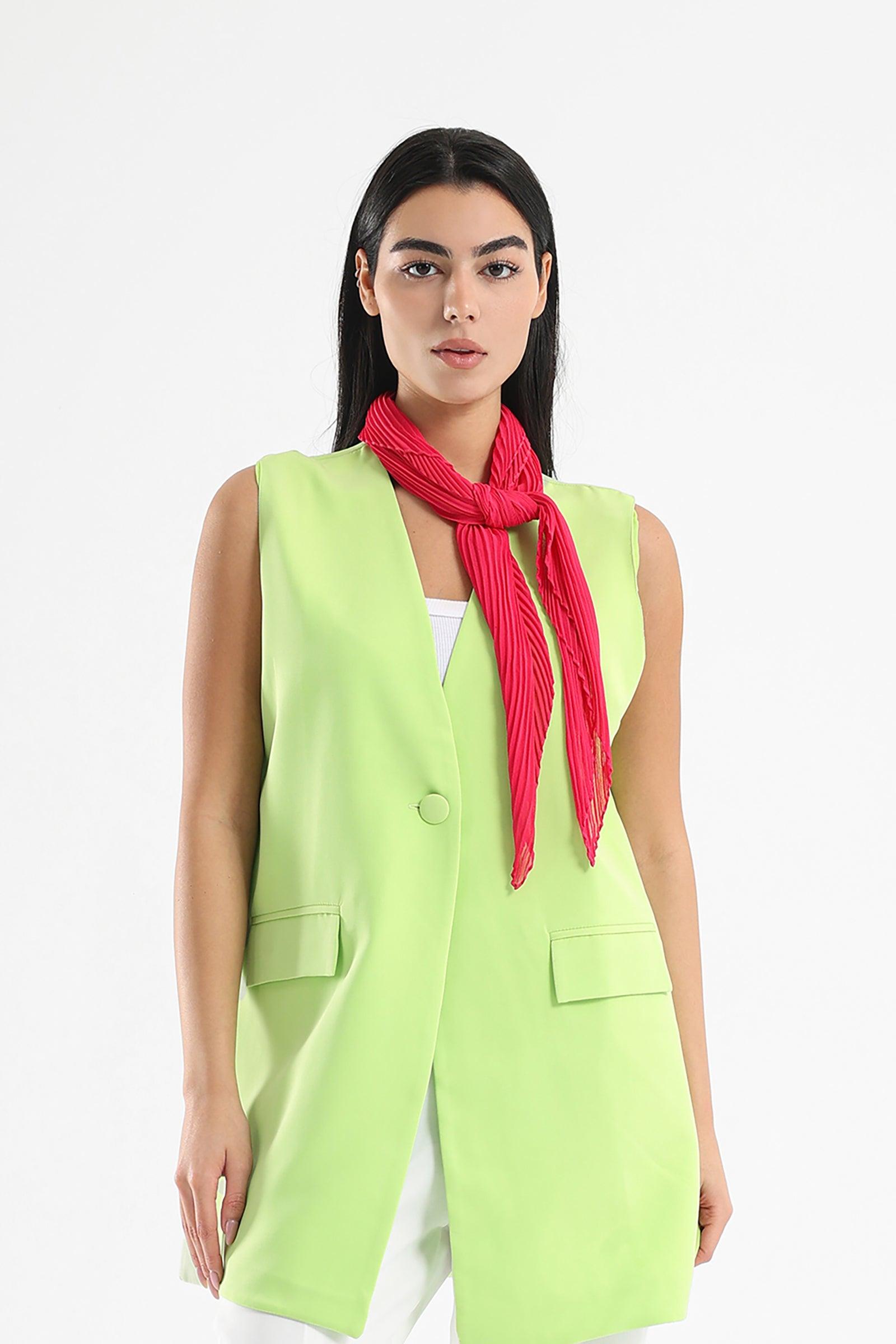 • The chiffon plisse scarf in a solid color, elegantly draped around the neck, adds a touch of chic sophistication to any outfit. This scarf features a lightweight chiffon fabric with delicate pleats, creating a beautiful texture and flow. The pleats give the scarf a three-dimensional effect, making it stand out and catch the eye. The textured surface enhances the scarf's overall elegance, creating a luxurious accessory that elevates your outfit.