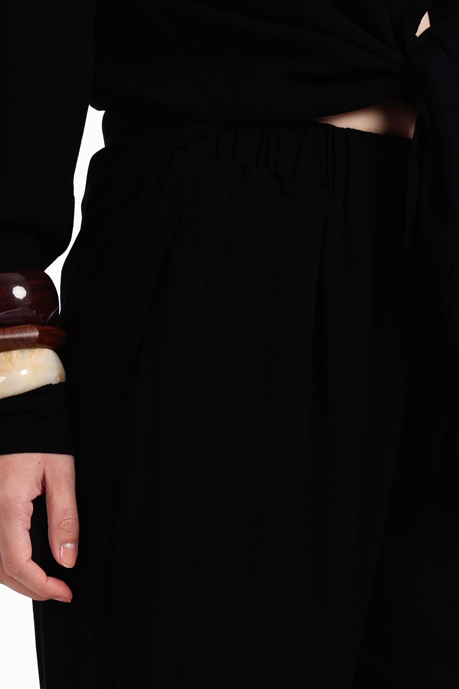 - Elastic waist with drawstring