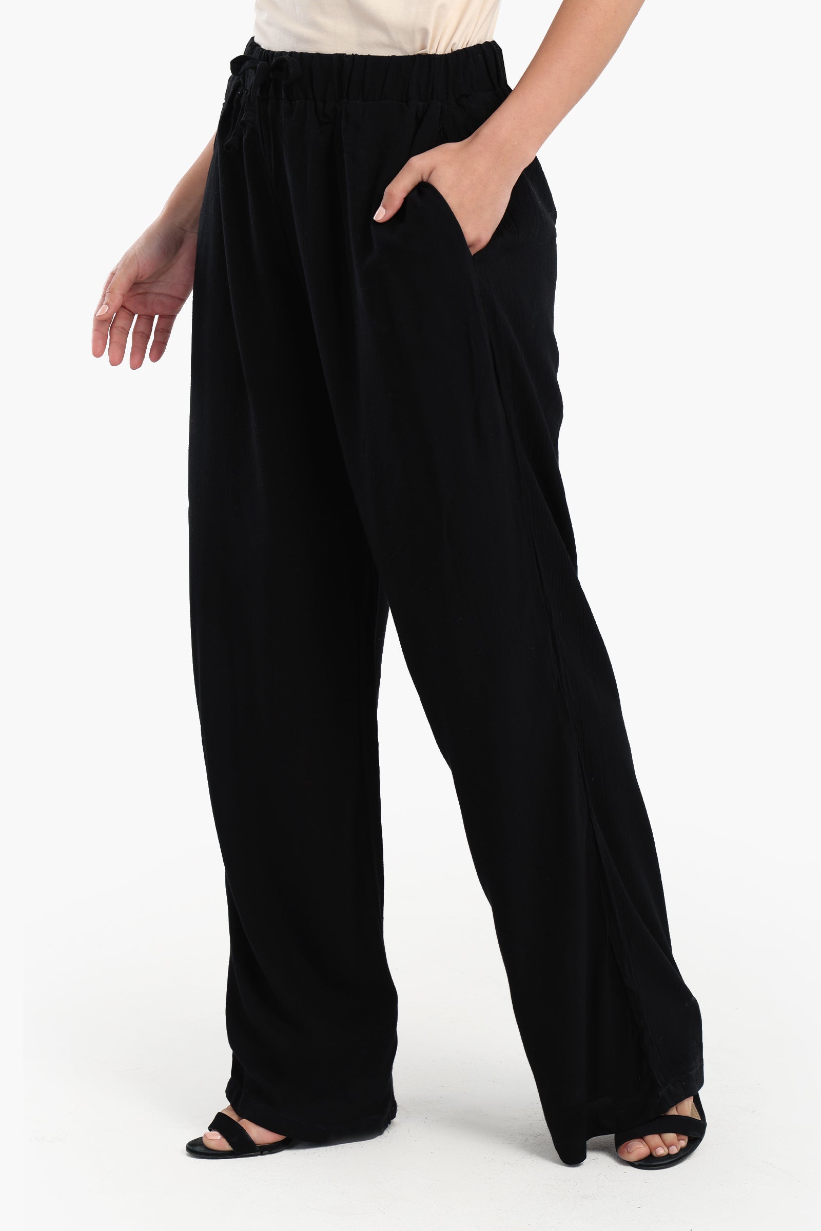 Crafted from a soft and breathable viscose blend, these women’s lounge pants offer the perfect balance of comfort and style. Designed with a relaxed fit, they feature a high-waisted design with an elastic waistband and adjustable drawstring, ensuring a secure and customizable fit. The solid pattern adds a touch of minimalistic elegance, making them a versatile wardrobe staple. With a wide-leg cut and full-length design, these pants drape beautifully, providing effortless movement and a flattering silhouette. The pull-on style ensures ease of wear, making them perfect for lounging, casual outings, or styling with your favorite tops for a chic yet laid-back look.