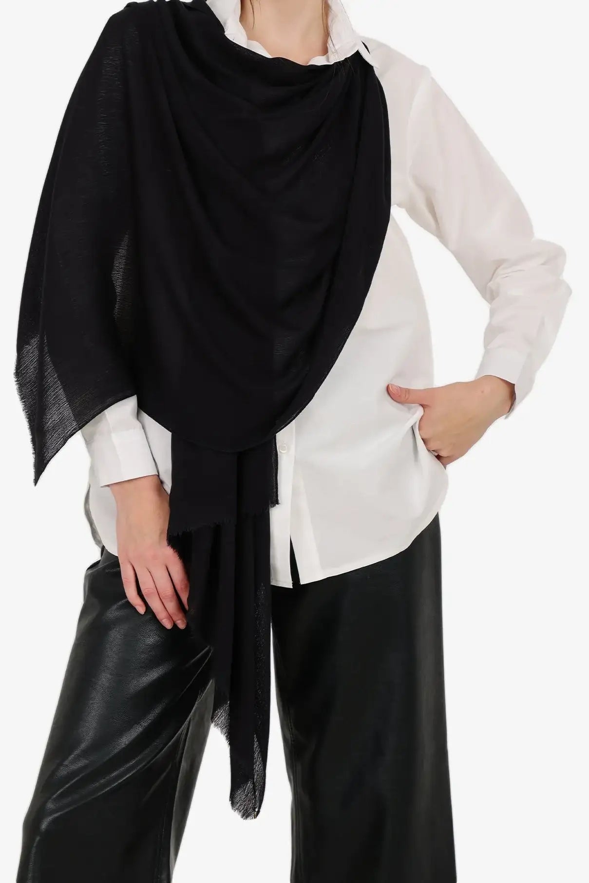 - Wrap it around for a classic hijab look with minimal pins.