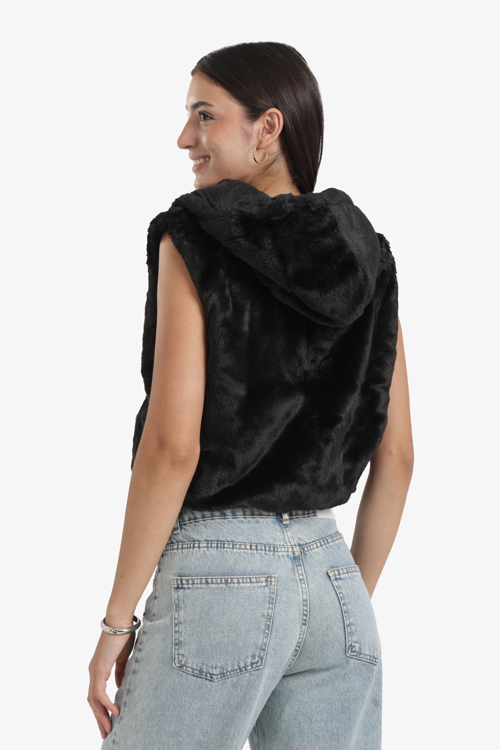 This cropped hooded vest is a stylish and versatile layering piece, perfect for casual and sporty looks. Featuring a regular fit with a sleeveless design and zip closure, it offers comfort and ease of wear, while the hood adds a trendy, functional touch. Its cropped length makes it ideal for pairing with high-waisted bottoms or layered over dresses.
