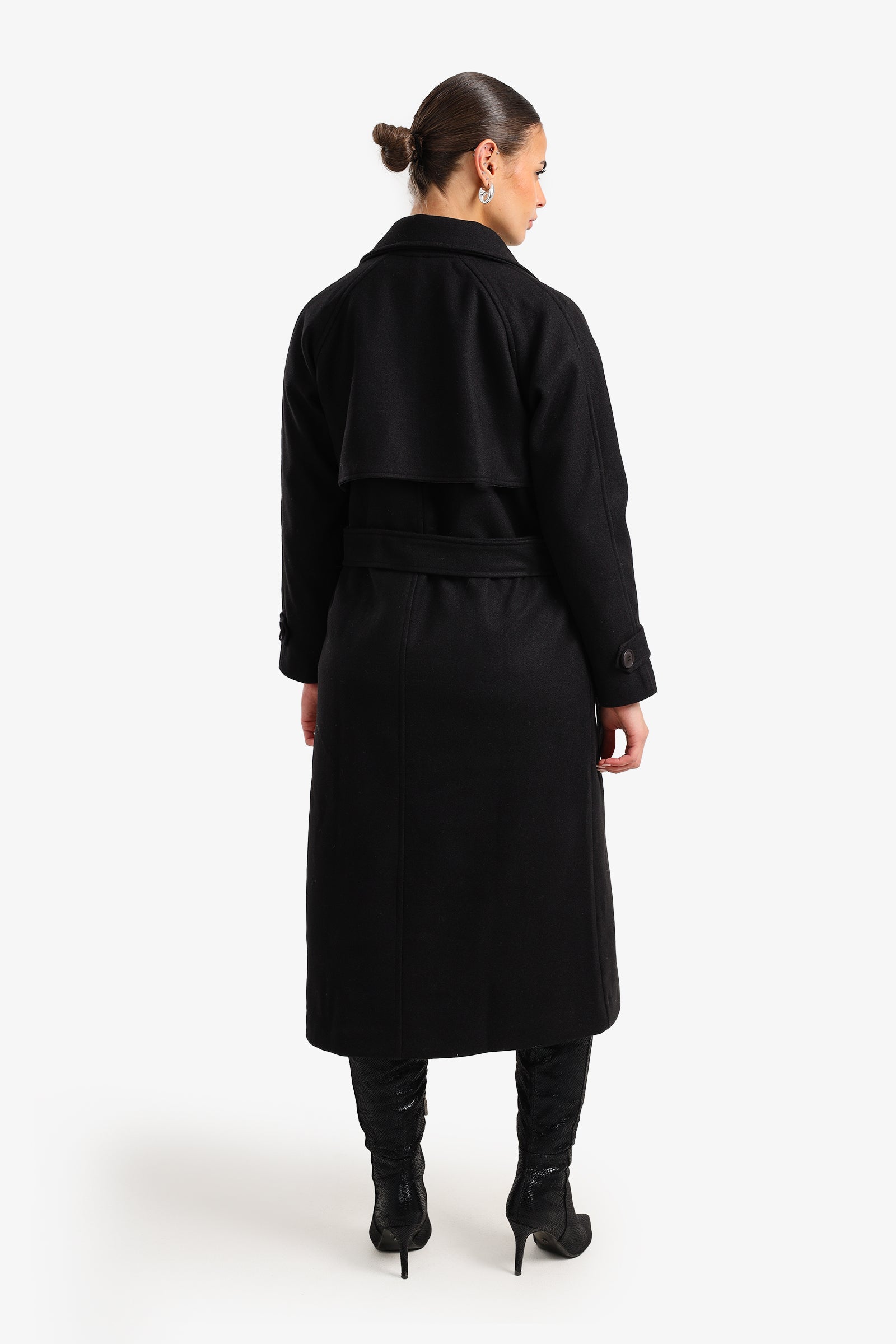 Crafted from wool, this coat features a relaxed fit with a plain pattern for timeless sophistication. It comes with a classic notch collar, long sleeves, and a double-breasted button closure for a structured look. The detachable belt allows for versatile styling, while side pockets add practical ease. Designed in a midi length, it’s a refined piece for layering through the colder months.