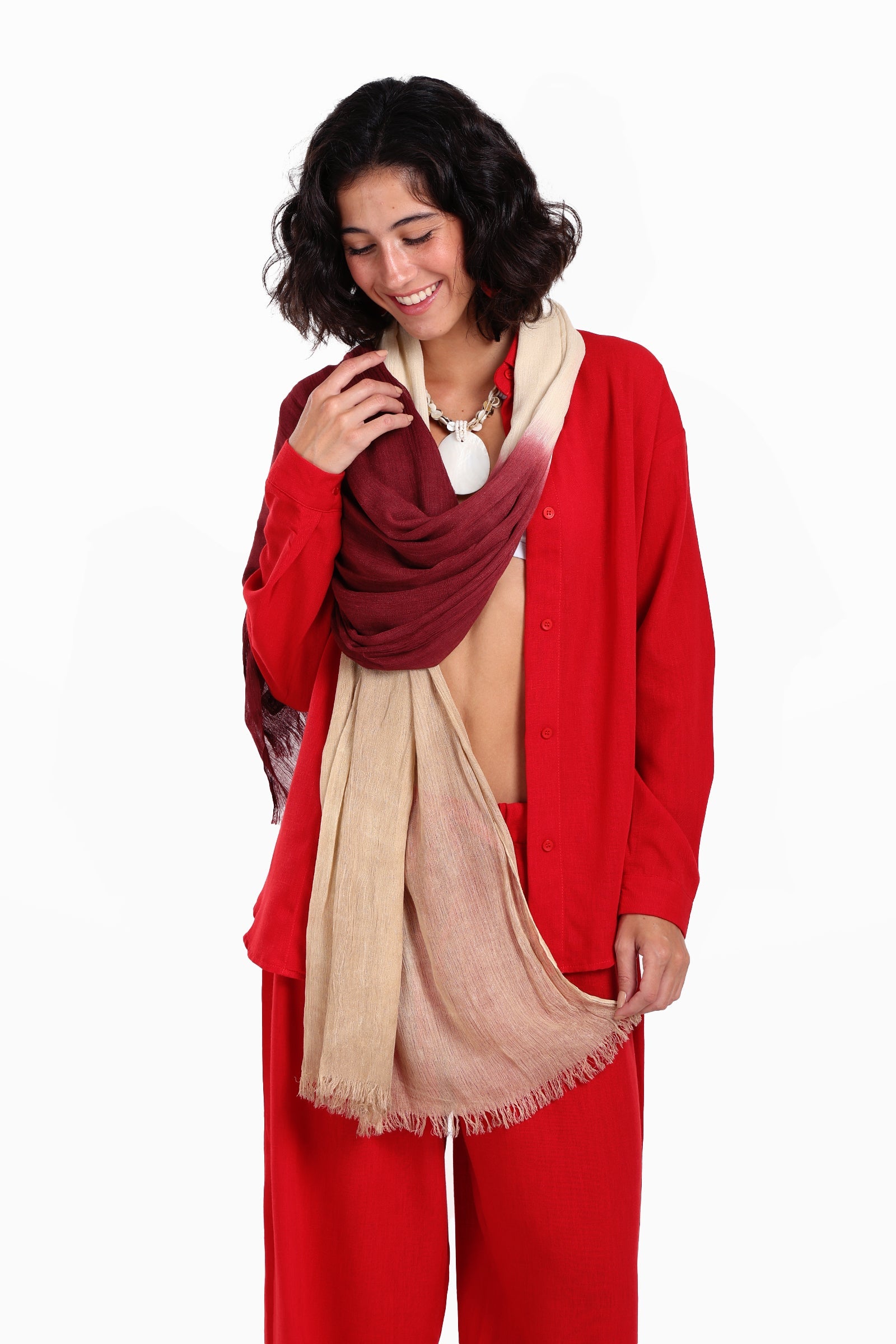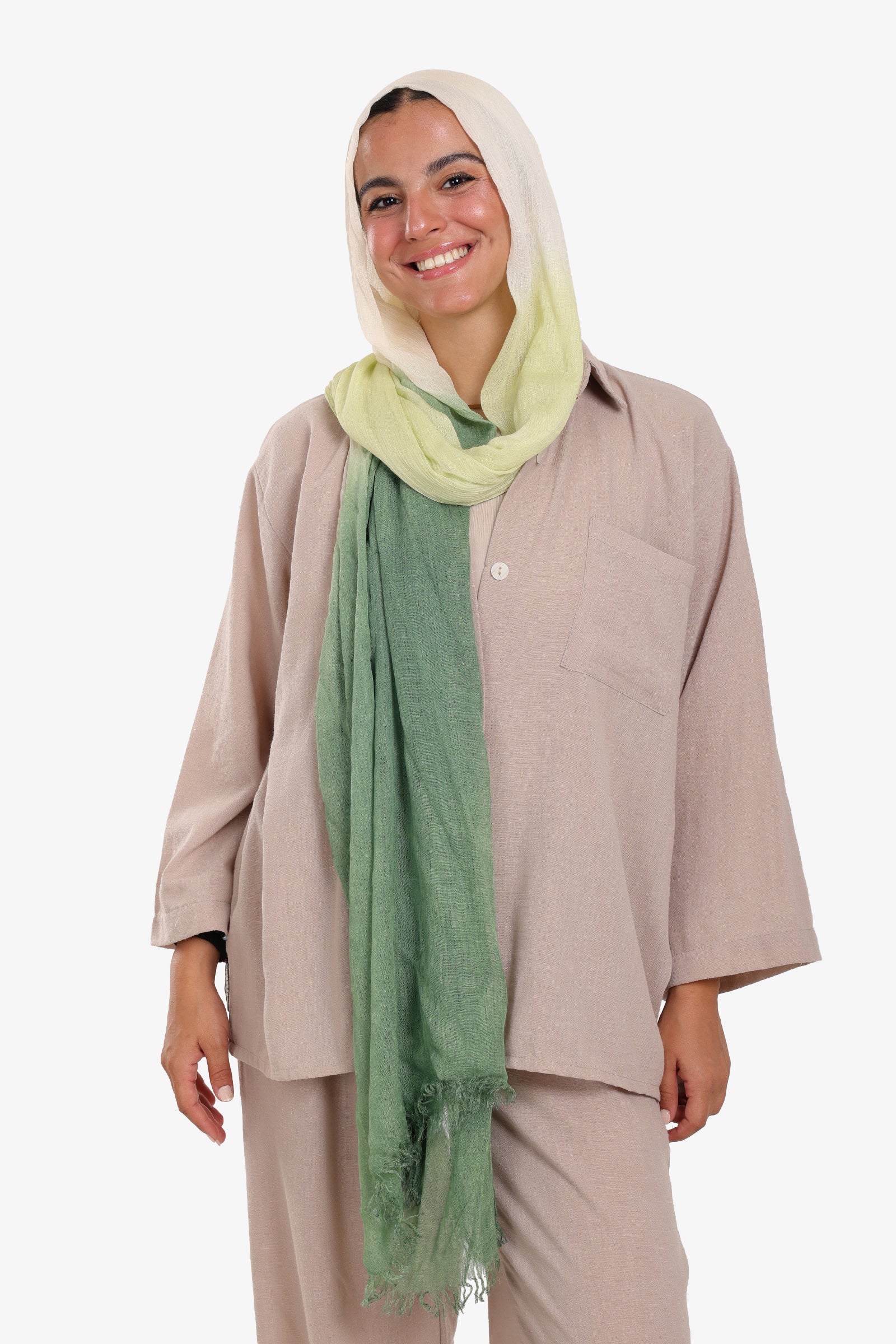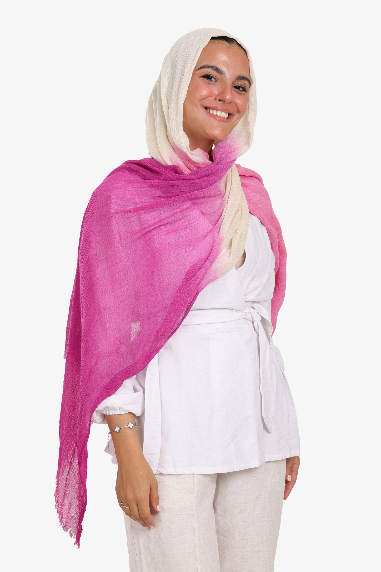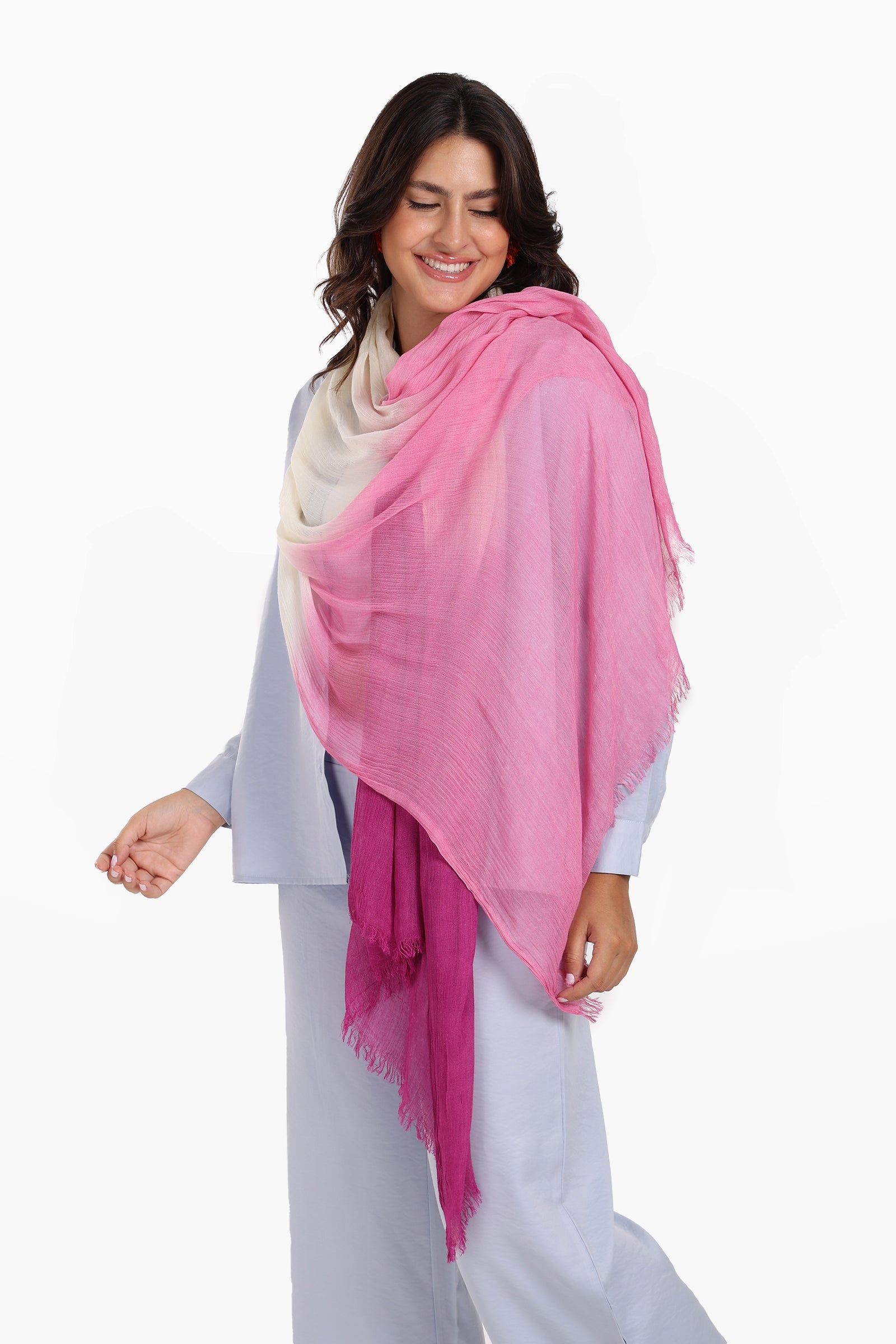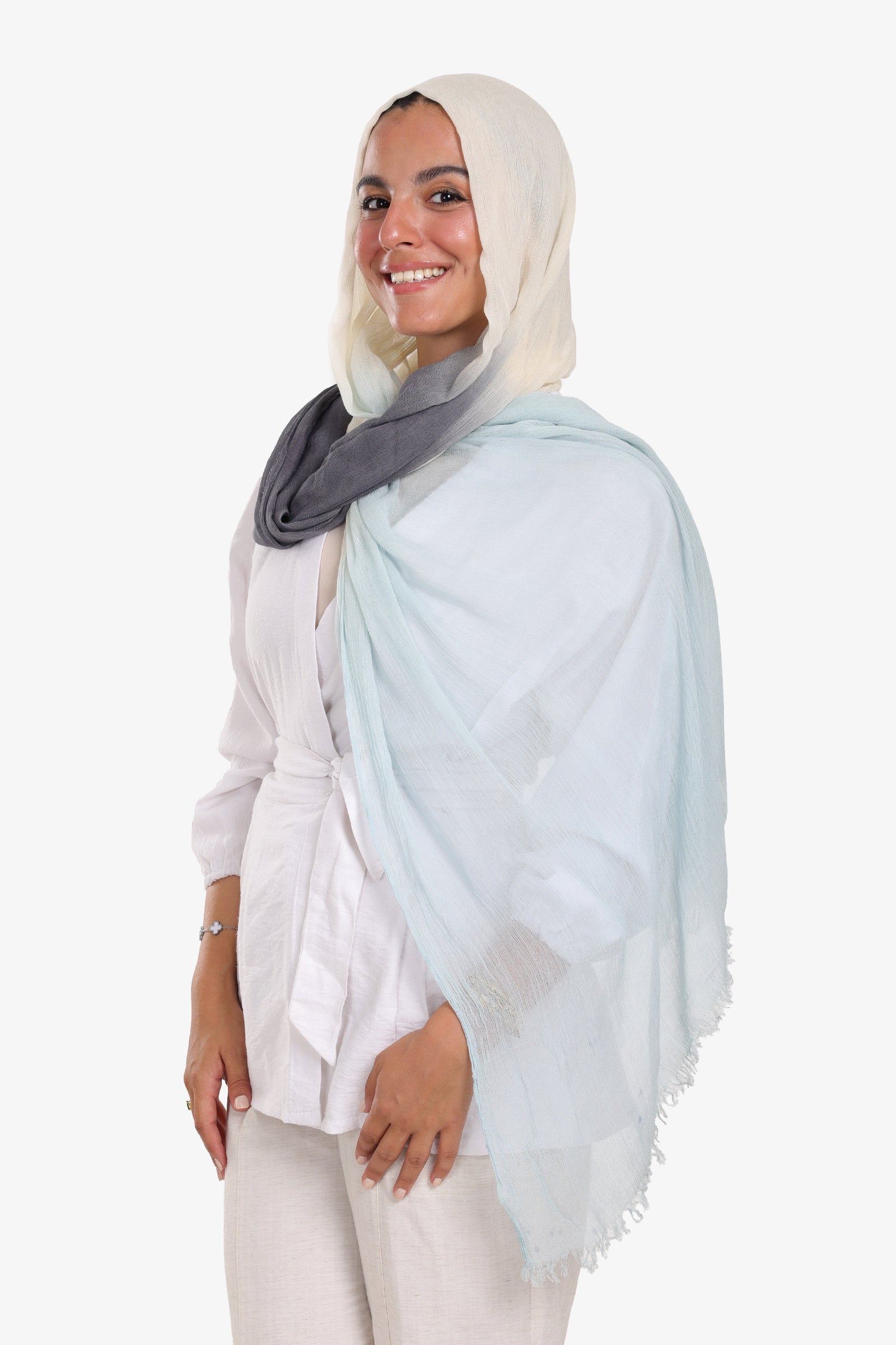 Soft, breezy, and effortlessly stylish, this Gradient Cotton Scarf adds a subtle splash of color to any outfit. Made from lightweight, breathable cotton, it features a beautiful gradient pattern that transitions seamlessly across tones. Its airy texture and easy styling make it a versatile piece you'll reach for season after season.
