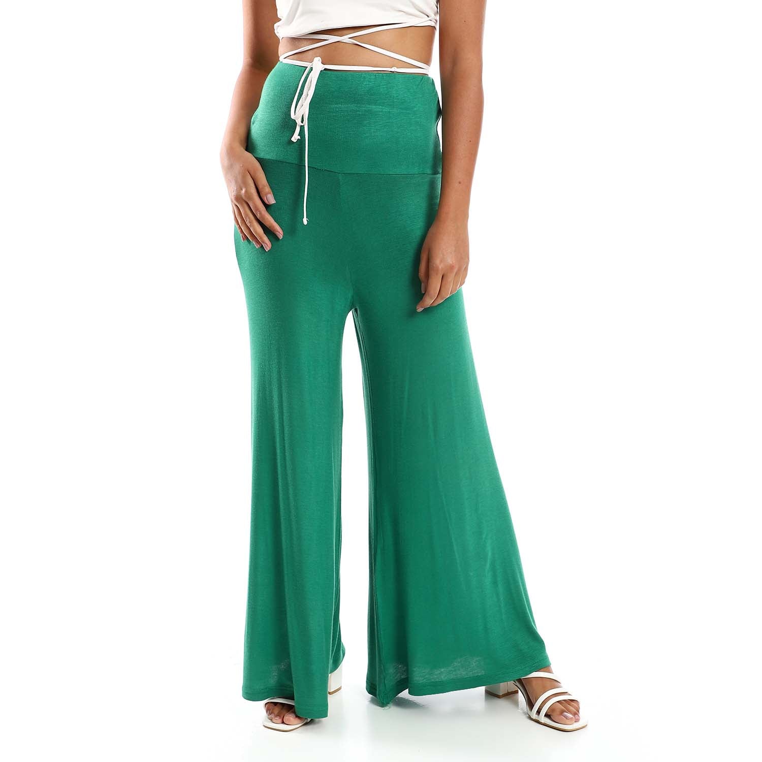 Solid Pattern Flare Fit Pants - بنطلون واسع بنمط سادة