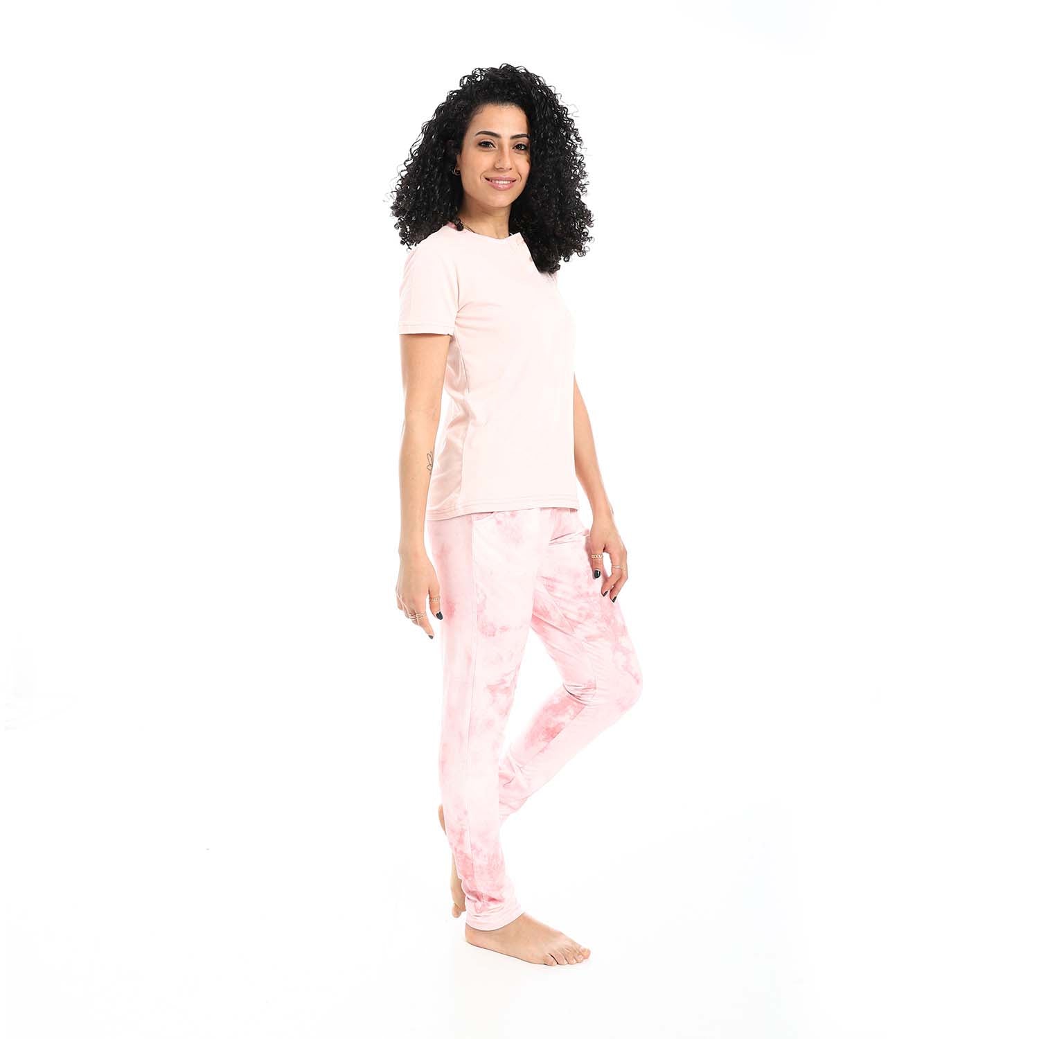 Self Pattern Short Sleeves Pajama Set - بيجامة منقوشة بأكمام قصيرة