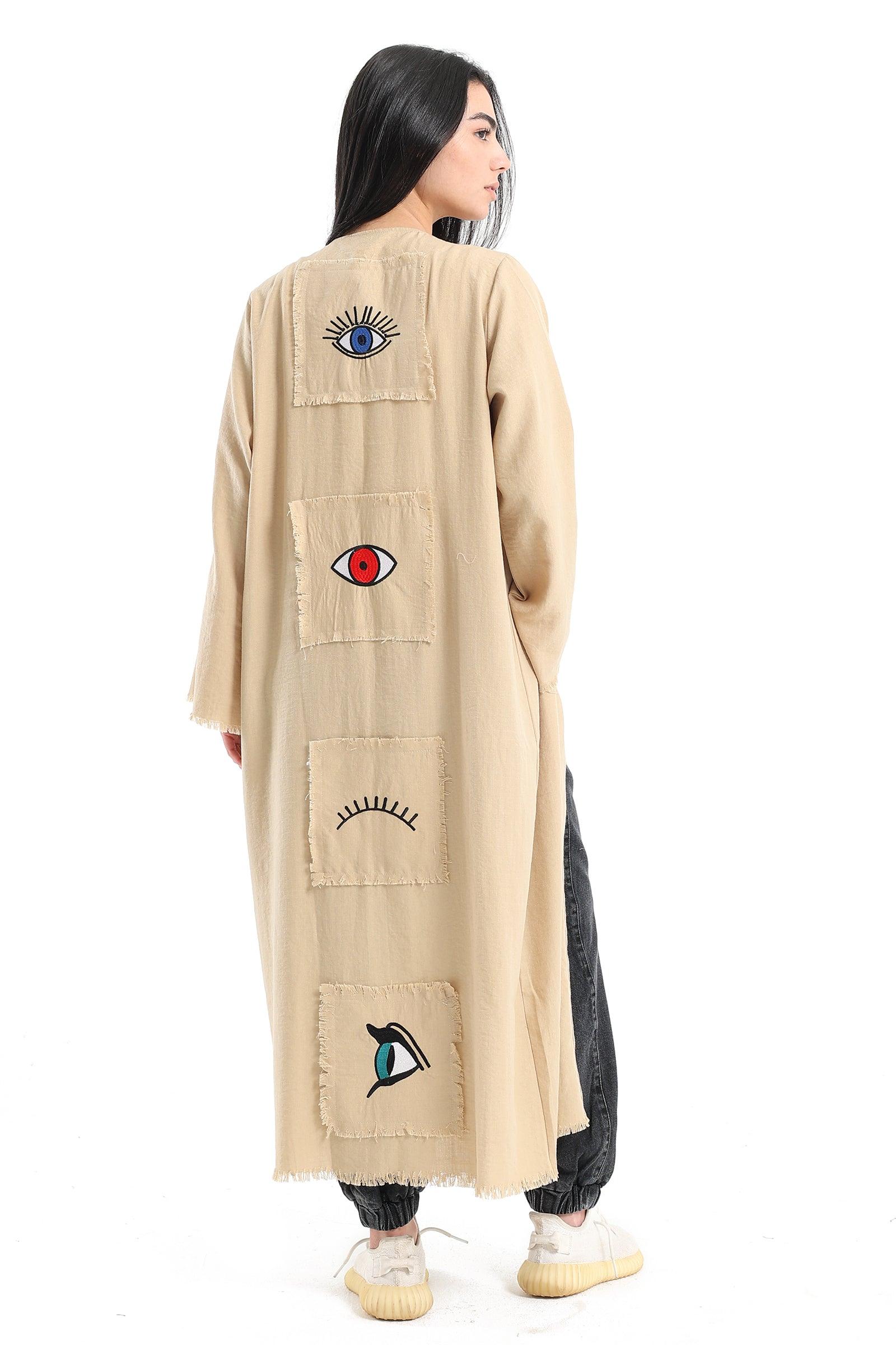- Step into a realm of enchantment and intrigue with our captivating Kimono adorned with four back patches, each featuring mesmerizing eye embroidery. This unique piece transcends fashion, inviting you to explore the depths of mysticism and symbolism with every wear. Let's uncover the allure of this extraordinary kimono and the enigmatic symbolism behind its eye embroidery. The eye, a symbol of wisdom, intuition, and insight, takes center stage on our kimono's back patches. Each intricately embroidered eye serves as a reminder to trust your inner vision, embrace your intuition, and seek clarity in a world of uncertainty. As you wear this kimono, allow the symbolism of the eyes to guide you on your journey of self-discovery and spiritual awakening.
