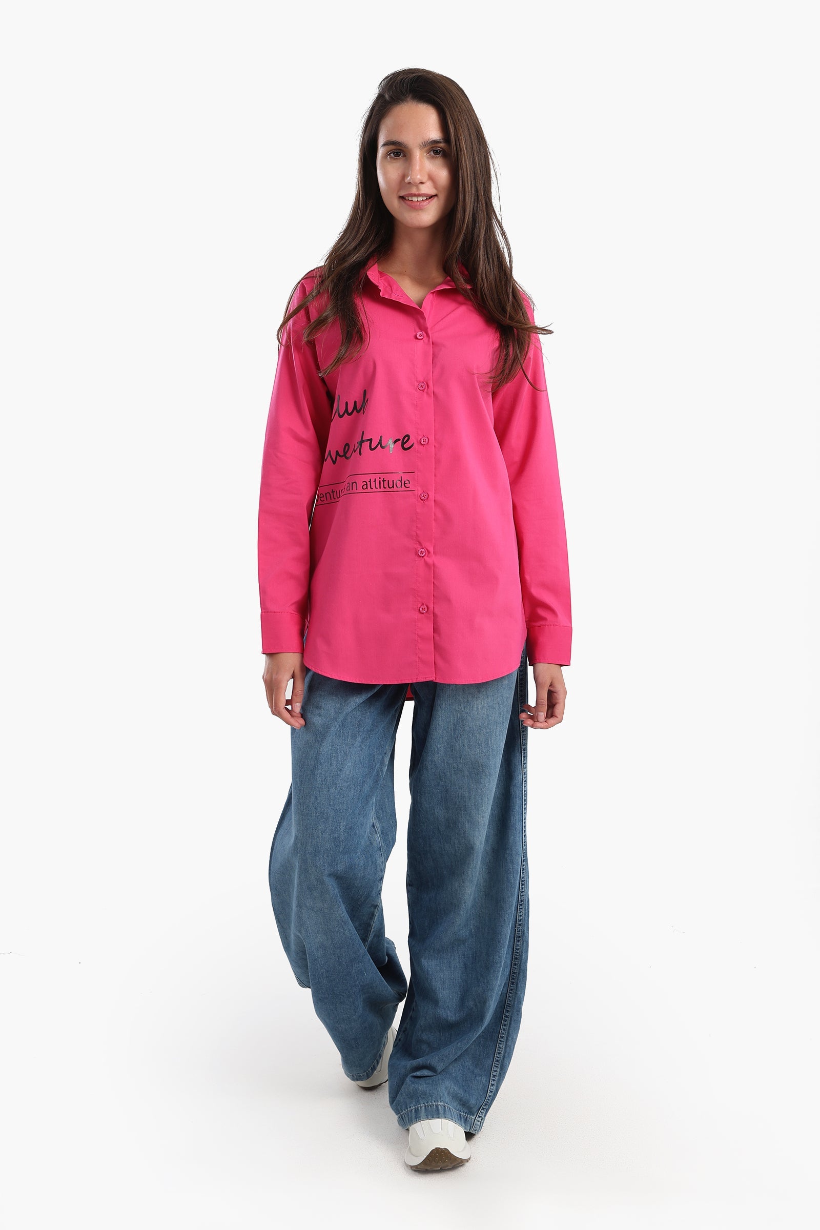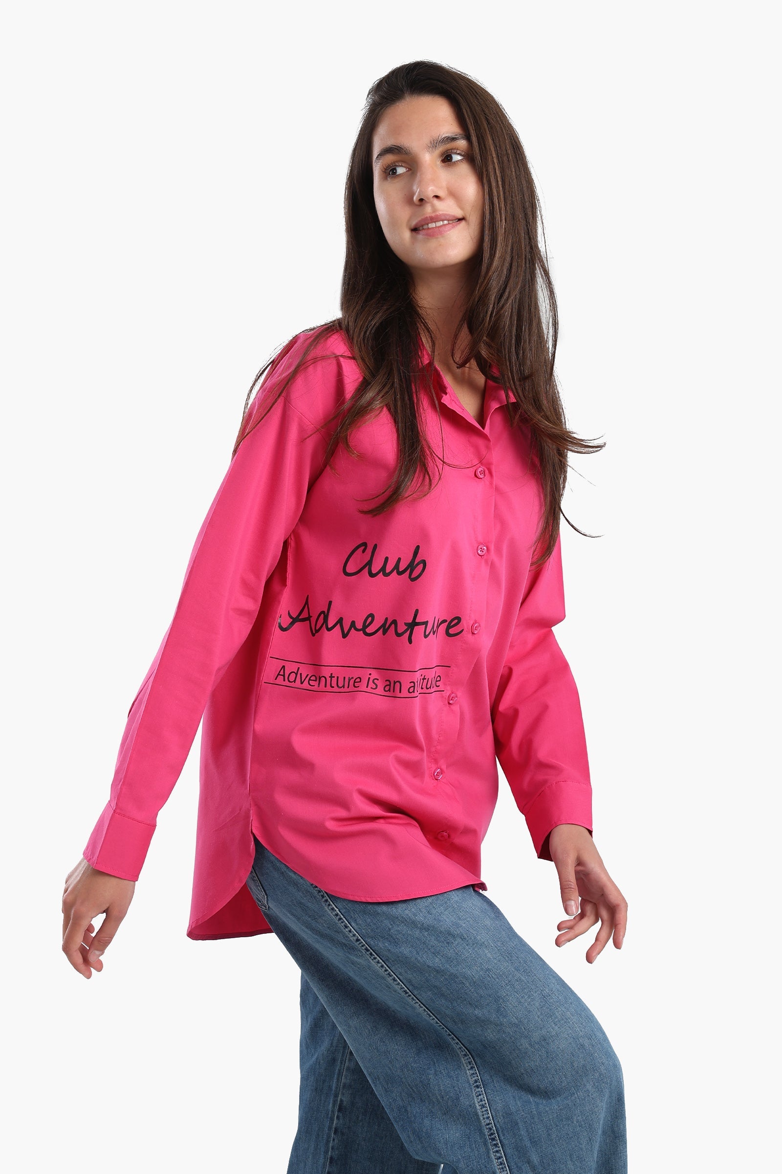 This fuchsia shirt combines bold style with versatility, making it a standout piece in your wardrobe. The regular fit ensures comfort while maintaining a flattering shape. Featuring a unique design, the shirt showcases a mix of a solid side and a printed pattern side, adding an interesting visual contrast. The collared neck and button-down closure with a full placket provide a polished look, while the long sleeves offer both coverage and style. The round hem adds a modern touch to the overall design. Easy to wear and effortless to style, this shirt is perfect for a range of occasions.