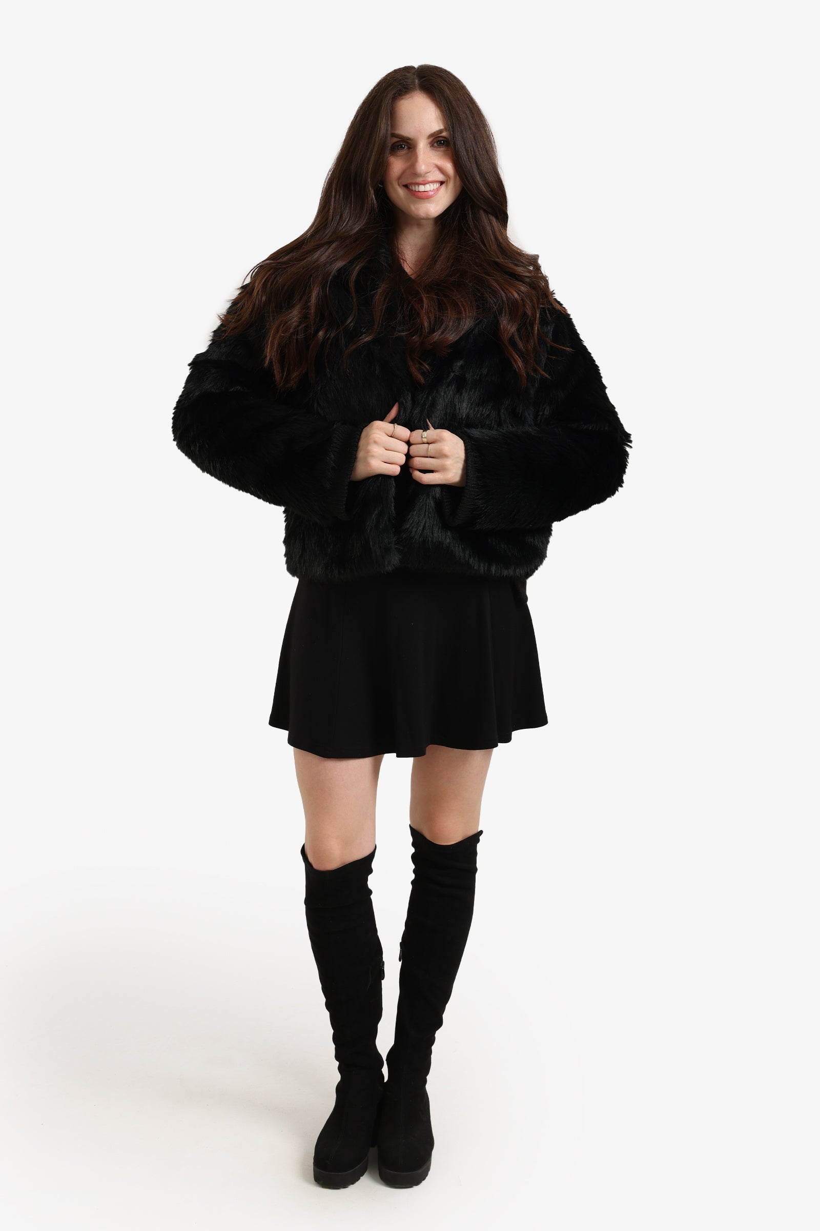 This fur jacket features a relaxed fit with a plain design for a chic yet cozy look. Styled with a notch neck, open neckline, and long sleeves, it’s a slip-on piece that adds instant warmth and elegance to any outfit — perfect for layering on cooler days.