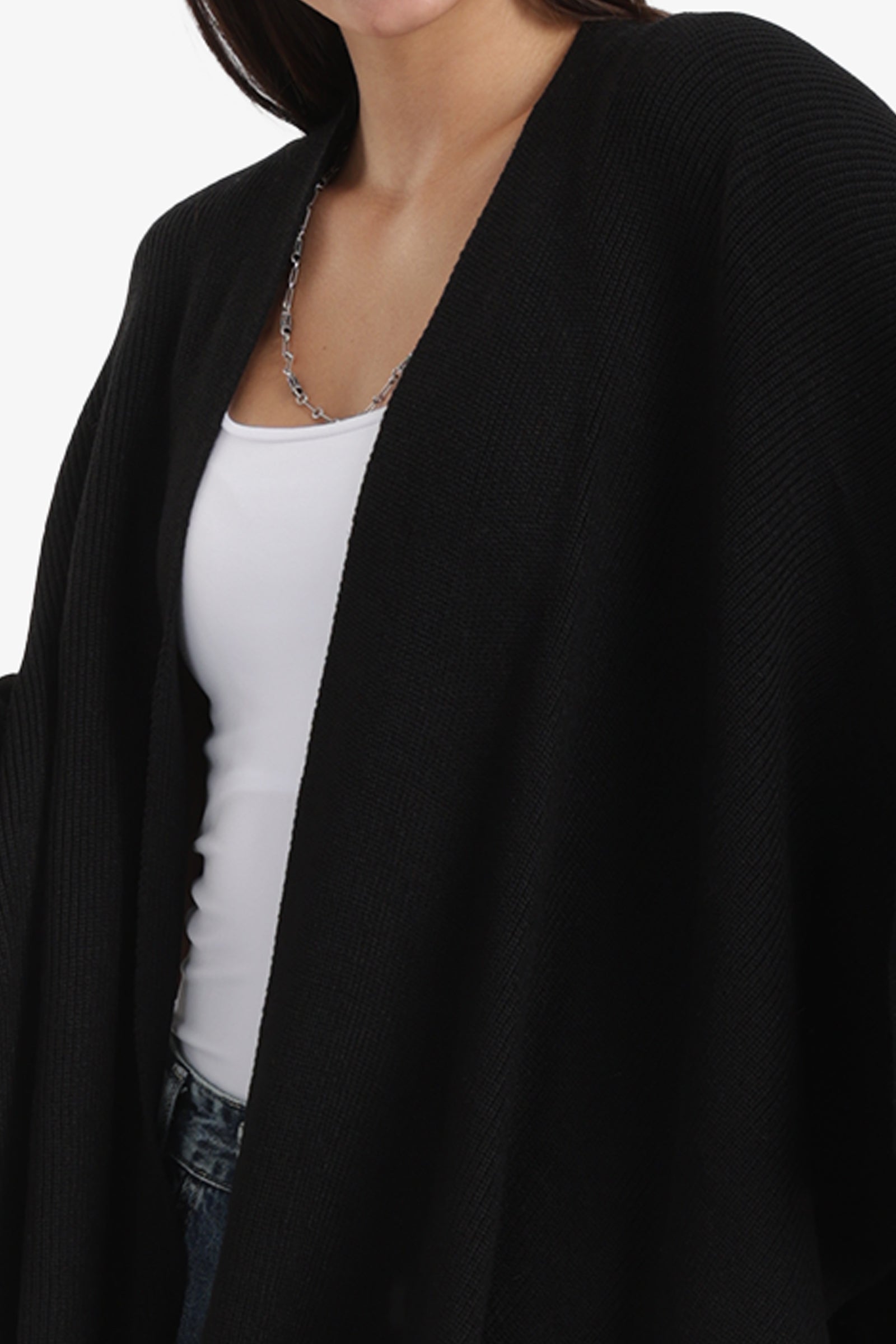 - Wear over a midi dress with heels for an elegant evening ensemble.