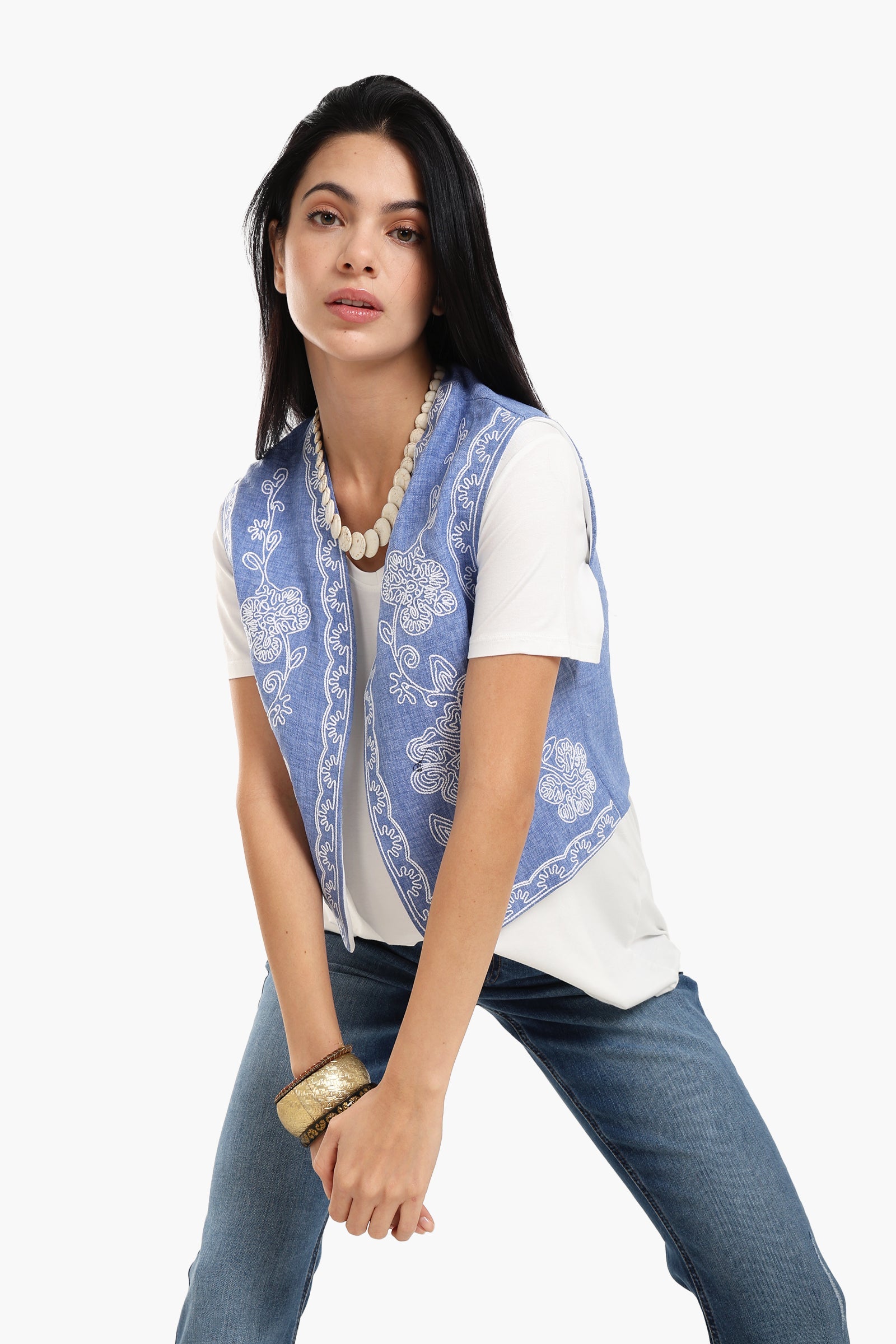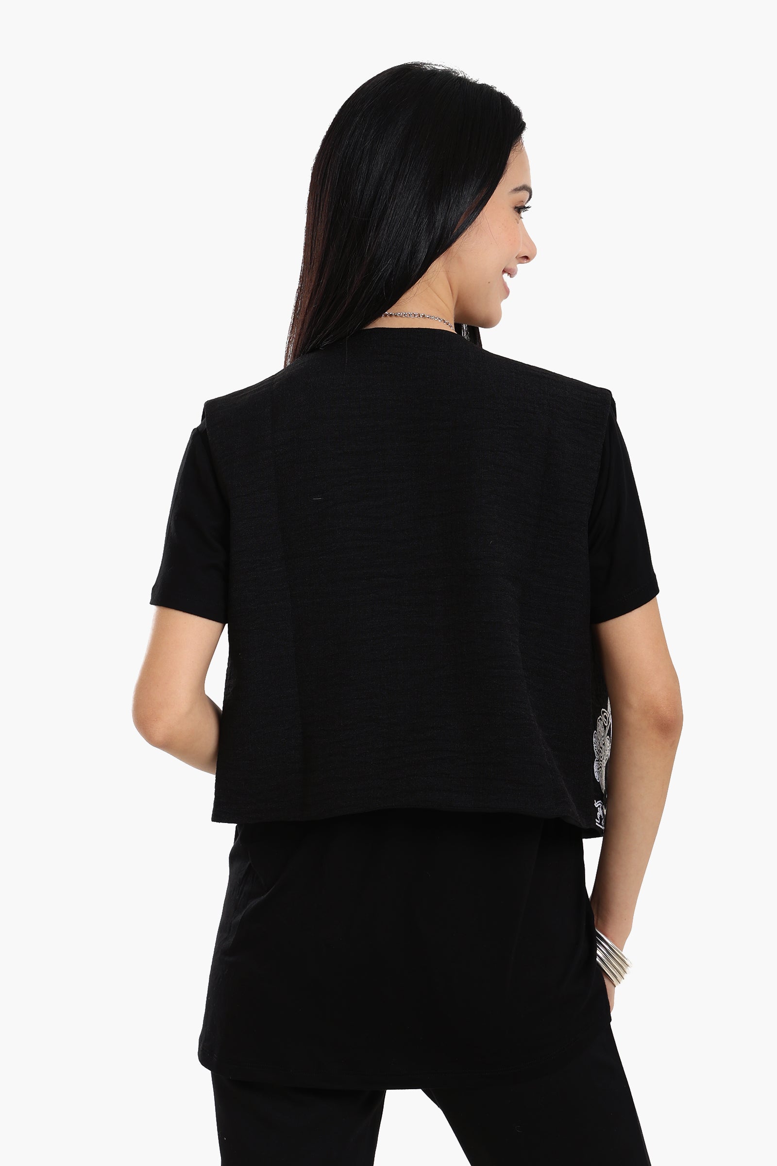Add a touch of freshness to your outfit with this White Floral Printed Cropped Vest. Made from soft and breathable Tencel, it features a delicate white flower print that brings out a soft, feminine flair. The open front and sleeveless design offer a breezy feel, while the cropped cut makes it ideal for layering over your favorite basics. This vest is designed for comfort, style, and ease, making it a perfect warm-weather layering piece.