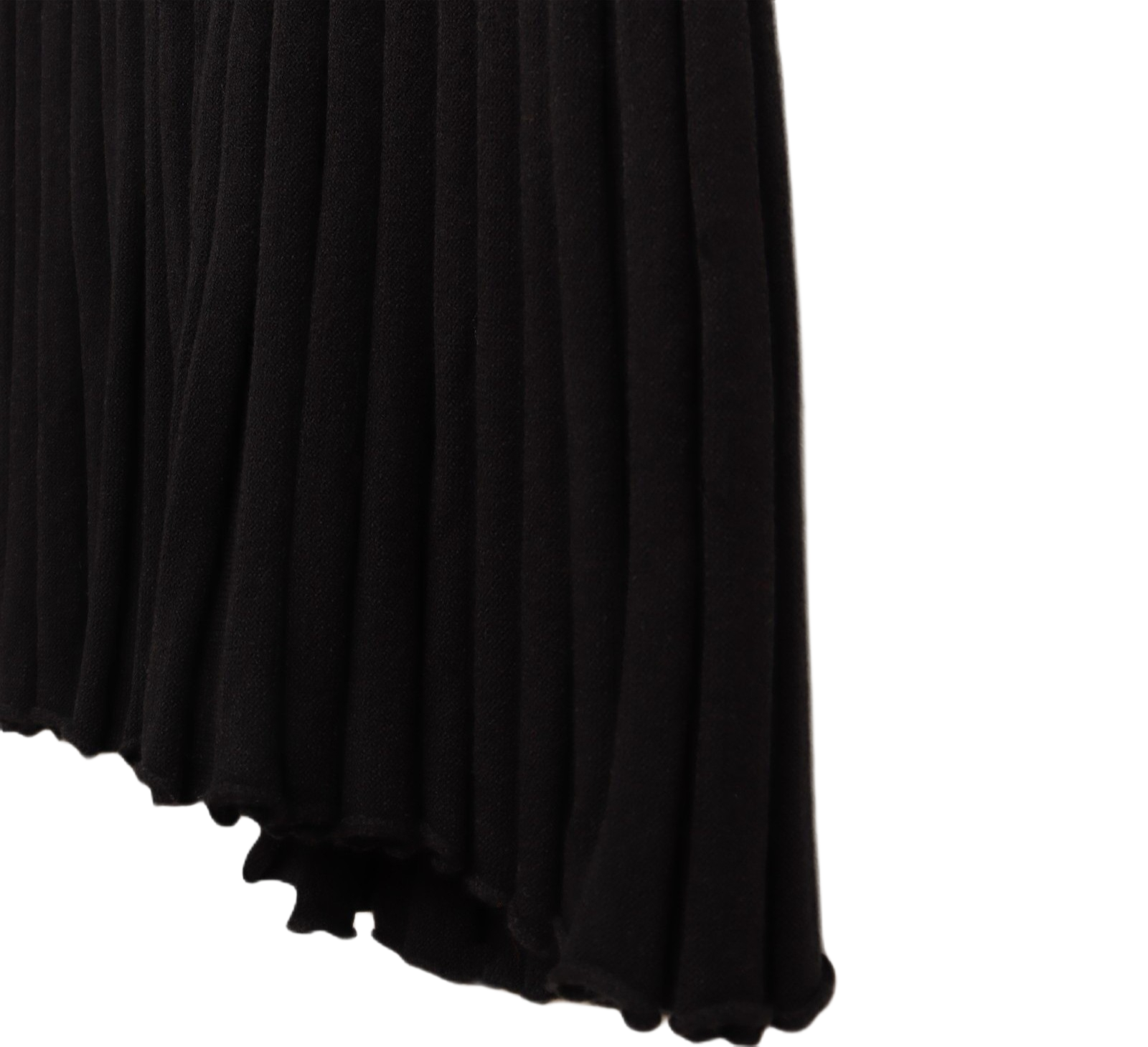 Elevate your everyday style with this ribbed pencil skirt, designed to offer a streamlined, figure-flattering silhouette. Crafted from soft, stretchy knit fabric, it features a vertical ribbed texture that adds visual length and subtle detail. The elasticated waistband ensures a comfortable fit, while the gentle wavy hem adds a feminine, modern touch. Perfect for both casual and polished outfits, this skirt combines comfort with effortless style.