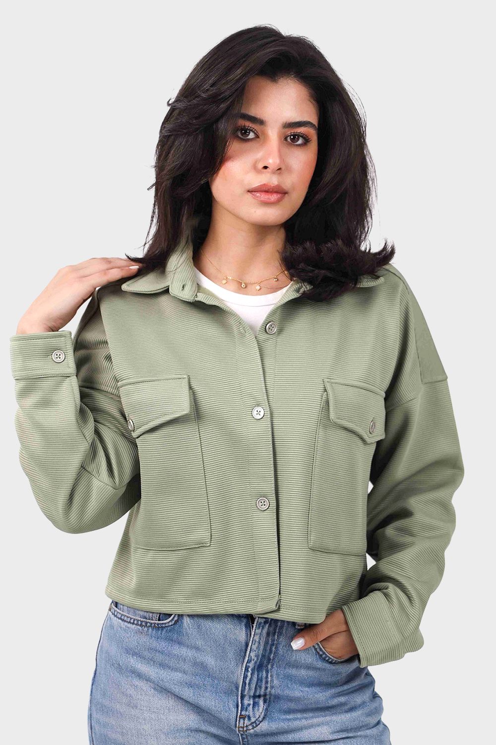 A short jacket style shirt that adds elegance thanks to its casual design and distinctive material that is flexible for easy movement throughout the day and can be worn open or with the buttons closed to enjoy multiple styles.