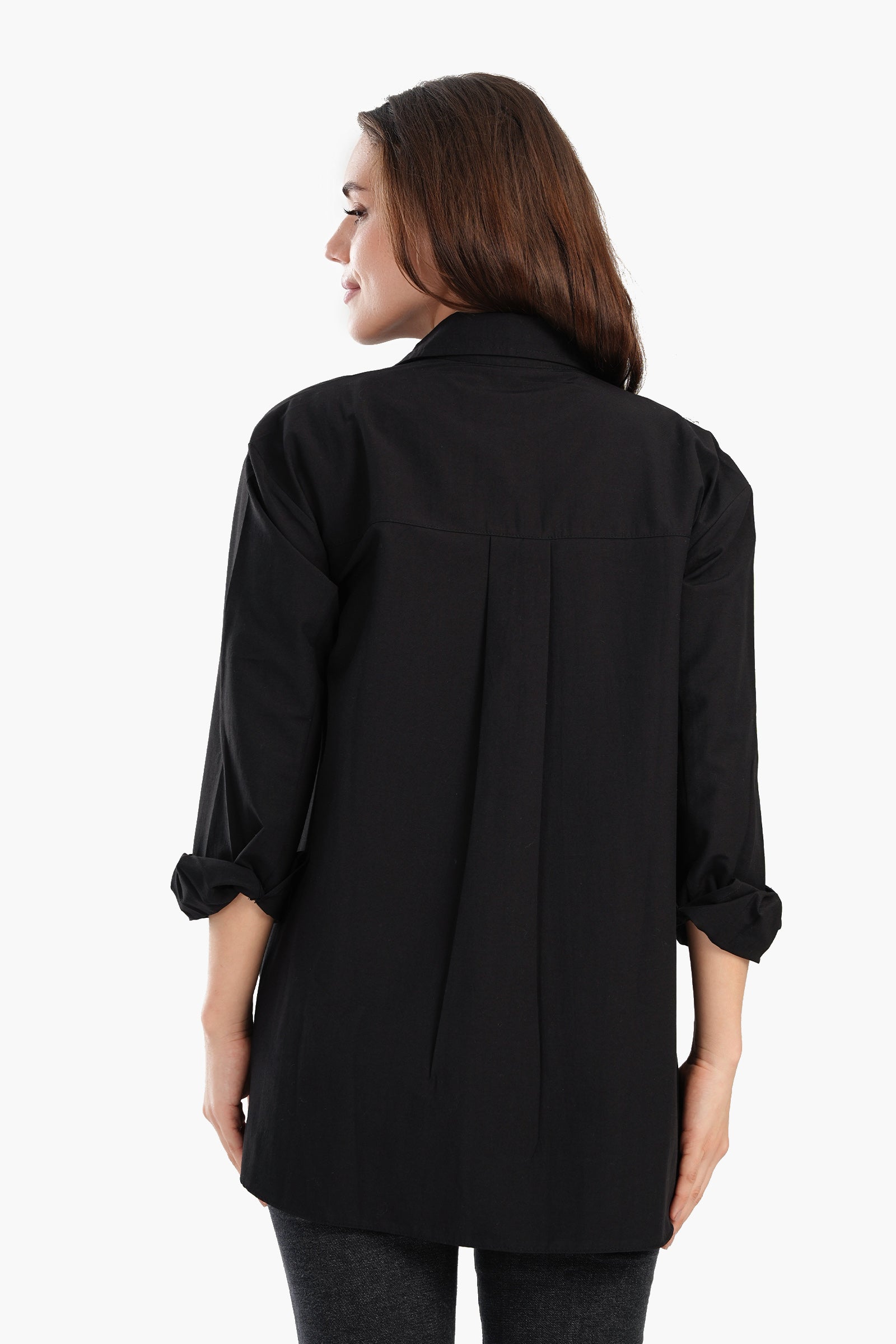 - Leave it untucked with leggings or slim-fit pants for a laid-back, modern outfit.