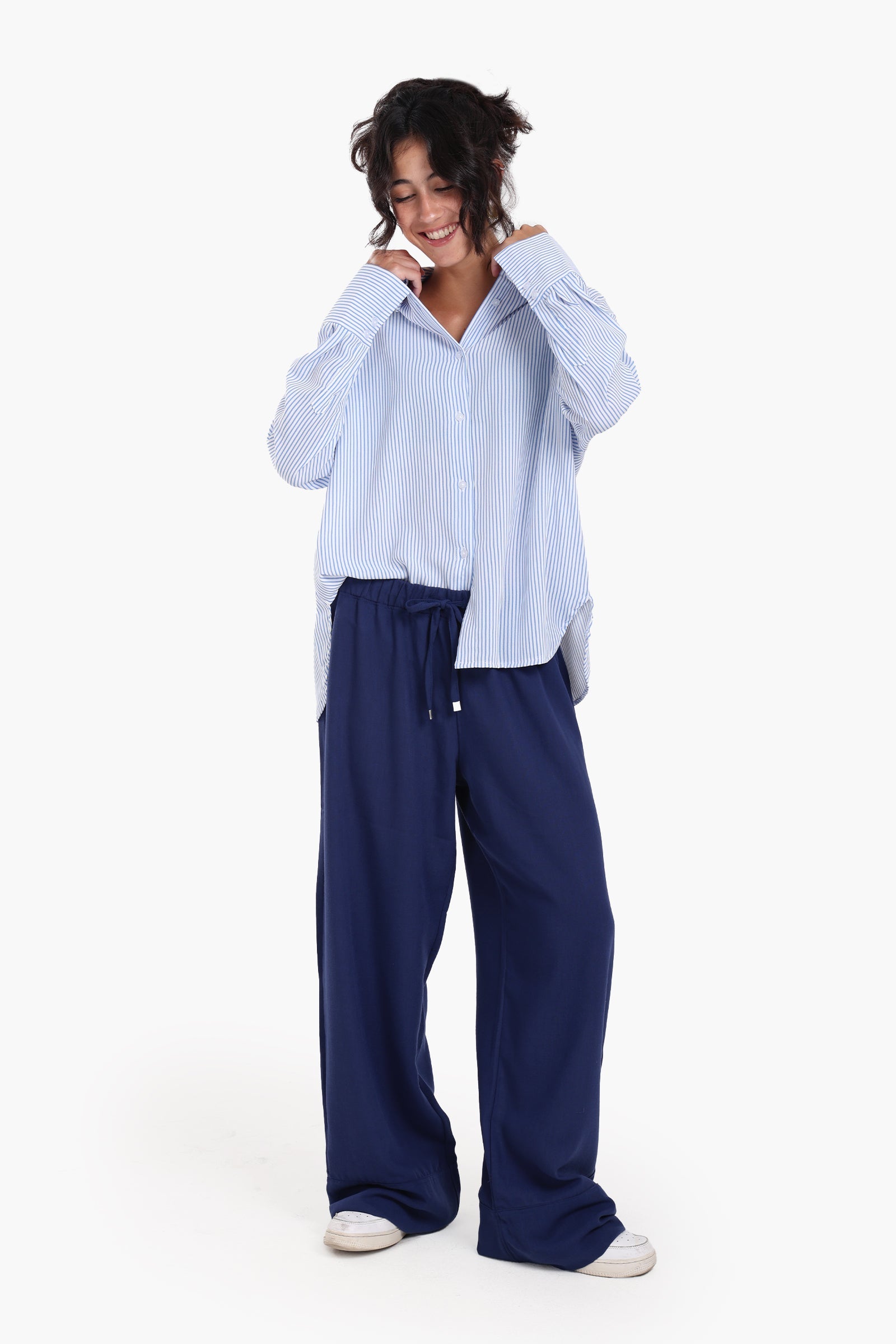 Stay effortlessly comfortable and stylish with this striped Tencel lounge shirt, designed for relaxed days and easy dressing. Made from soft, breathable Tencel fabric, this shirt offers a flowy, lightweight feel that’s perfect for lounging or casual outings. It features a classic collared neckline, button-down closure with a full placket, long sleeves, and dropped shoulders for a laid-back silhouette. The striped pattern adds a timeless touch, making this lounge shirt a versatile wardrobe essential.