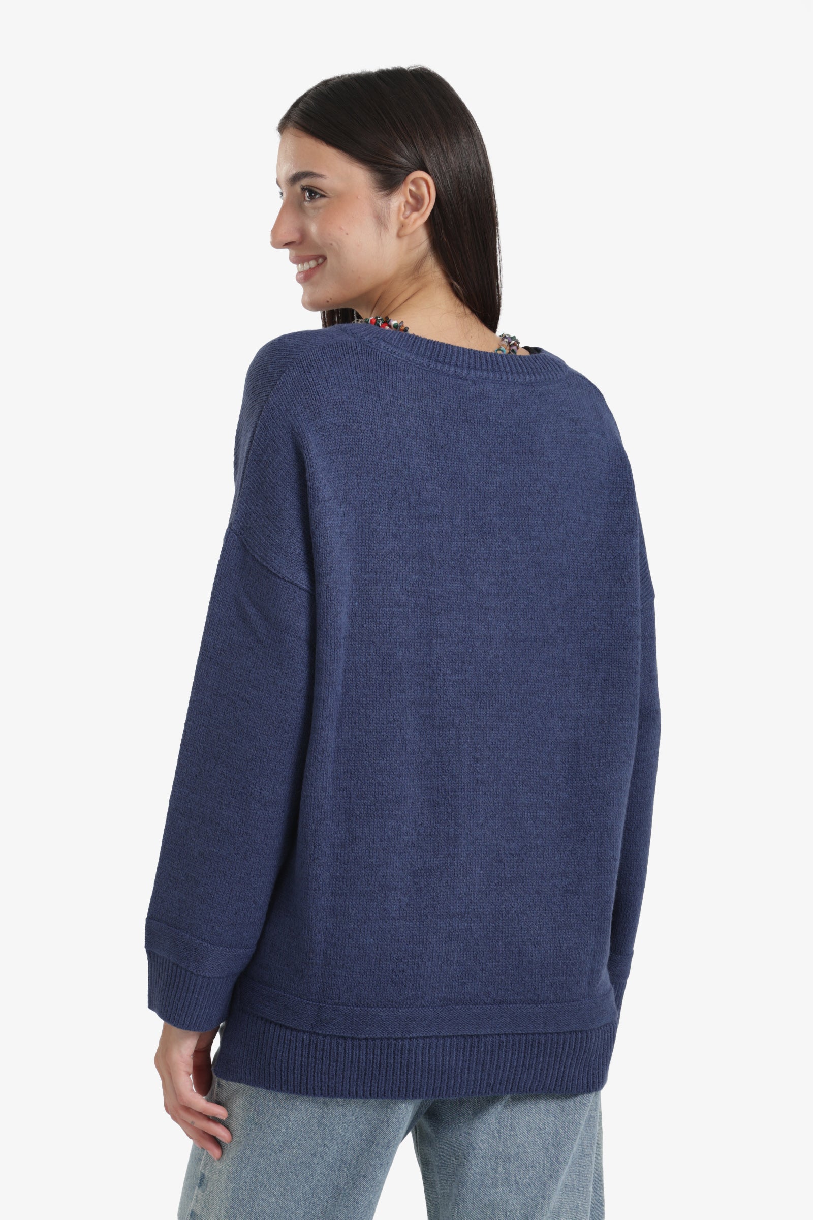 This ribbed v-neck wool pullover combines comfort with effortless elegance. Designed in a relaxed fit, it features ribbed detailing along the neckline, cuffs, and hem for a refined finish. The side slit adds ease of movement and a modern touch, making it a versatile piece you can dress up or down for any occasion.