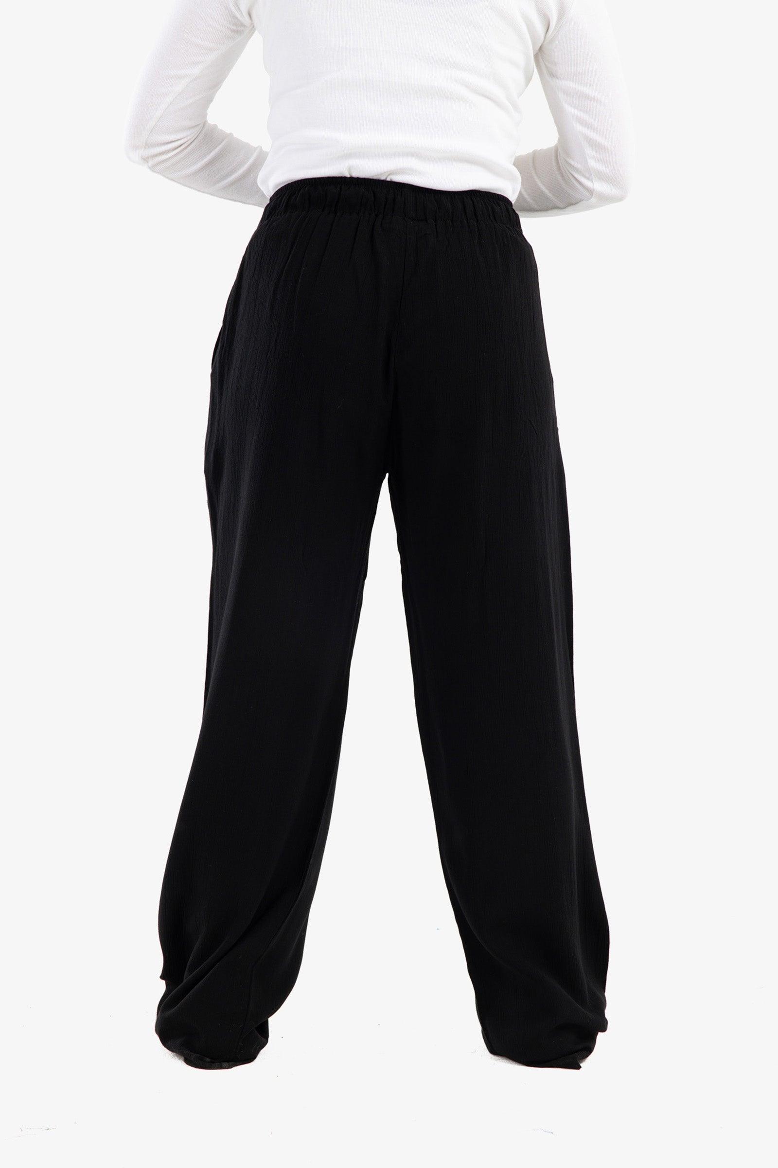 - Introducing our Voile Pants, the epitome of effortless style and comfort! Crafted from lightweight voile fabric, these pants are perfect for all-day wear. The elastic waist with drawstring ensures a comfortable fit, while the wide leg cut adds a touch of elegance. These pants feature side pockets for added convenience, making them perfect for running errands or lounging at home. The full length elongates the legs, making them flattering for all body types. Pair these pants with our matching blouse for a coordinated look that's perfect for any occasion.