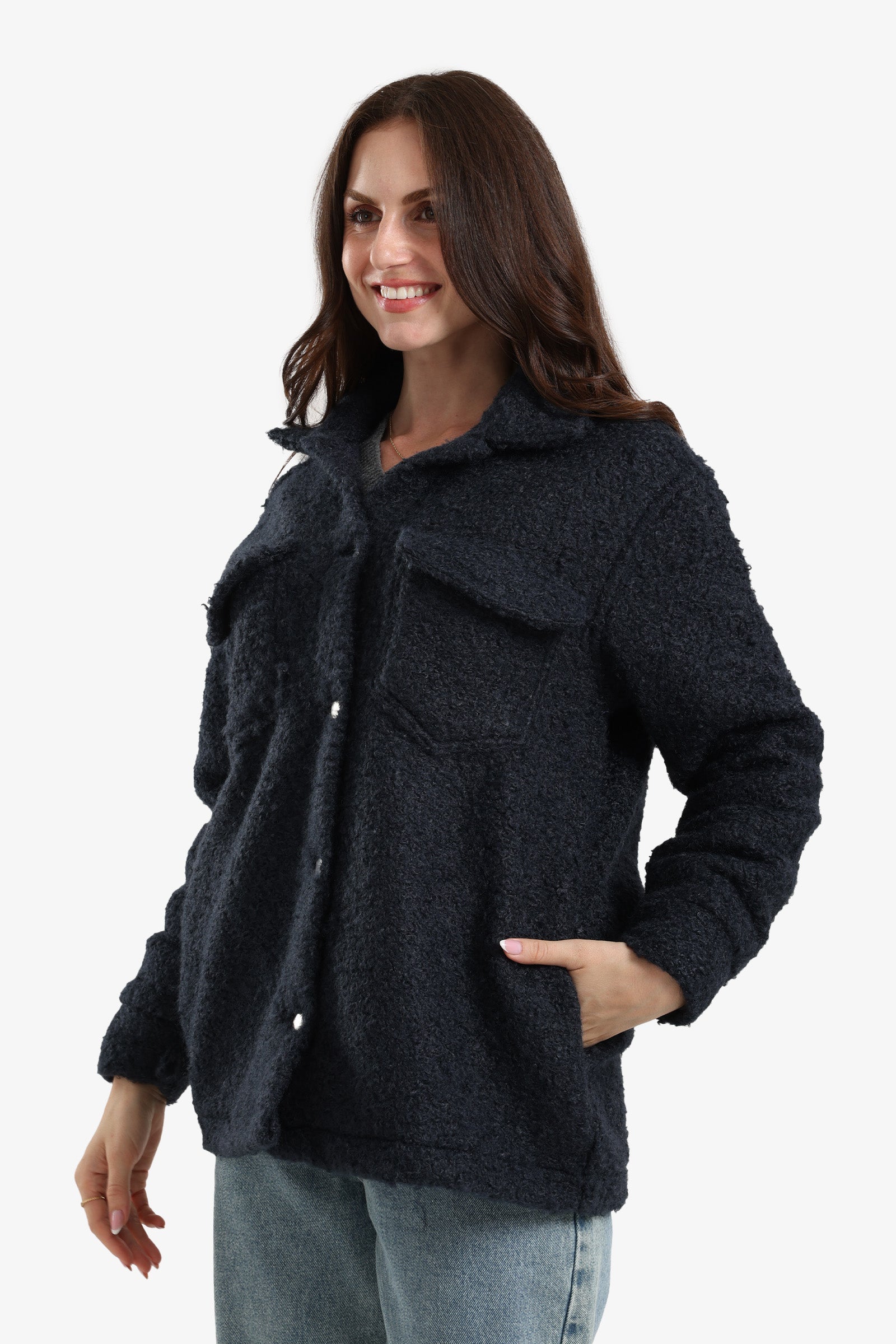 Crafted from a warm wool blend, this shirt comes in a relaxed fit with a clean, plain design. It features a classic collar neck, long sleeves with buttoned cuffs, and a full button placket for easy wear. Finished with chest and side pockets, it blends casual comfort with practical details — perfect for layering in cooler weather.